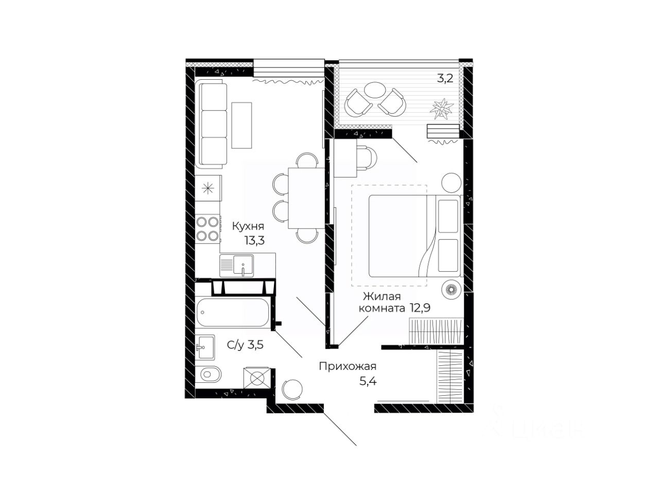 Общая площадь36,7 м2