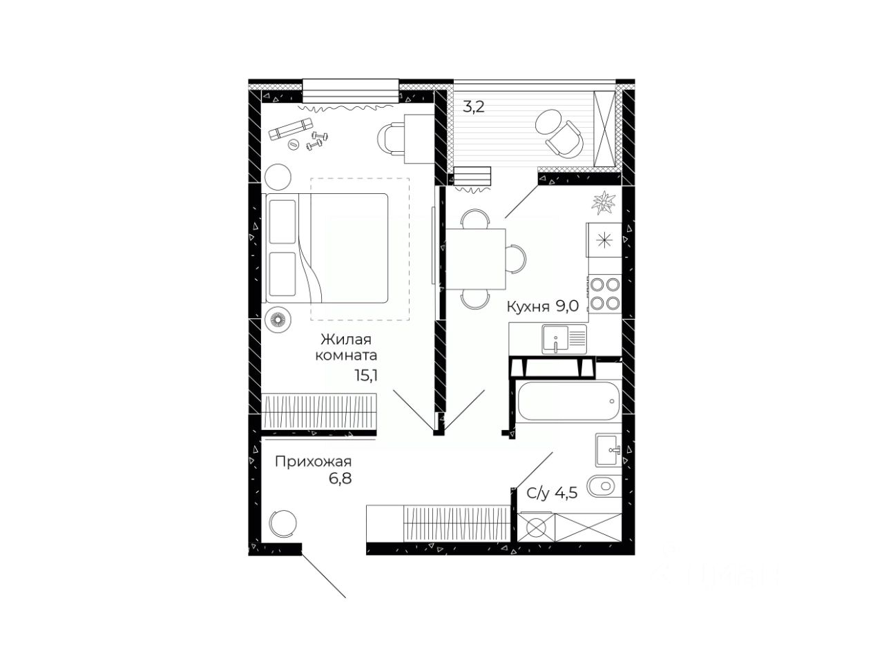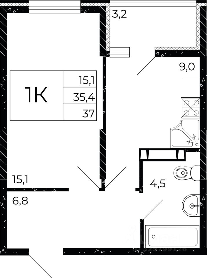 Общая площадь37 м2