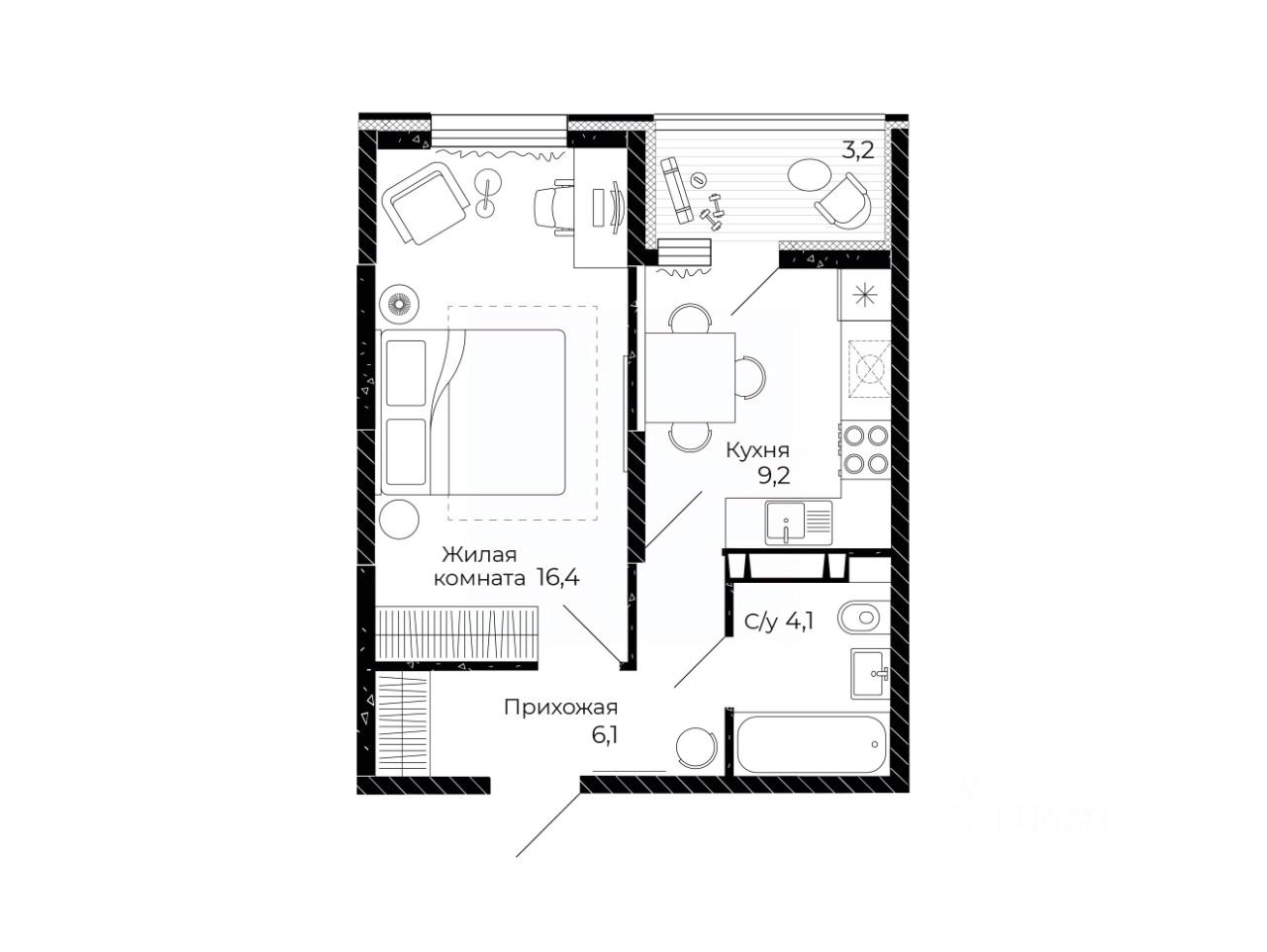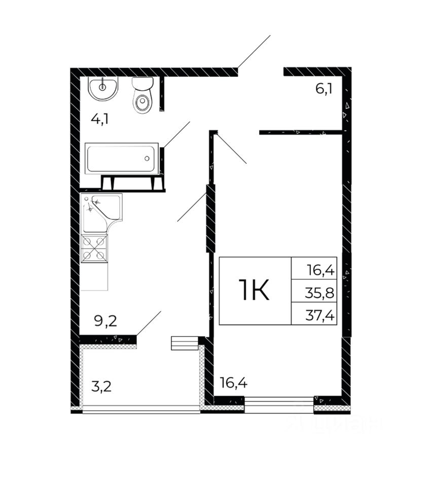 Общая площадь37,4 м2