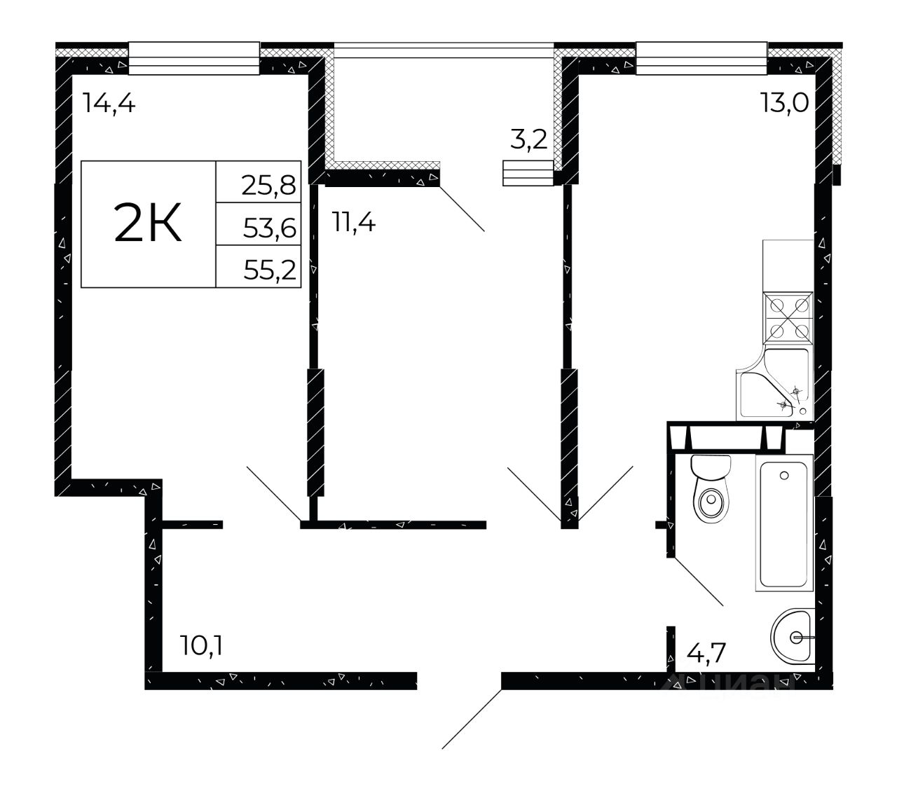 Общая площадь55,2 м2