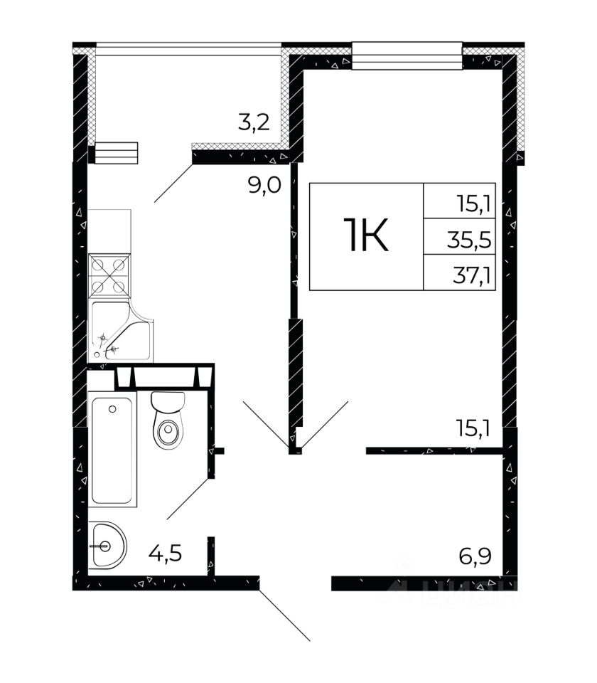 Общая площадь37,1 м2