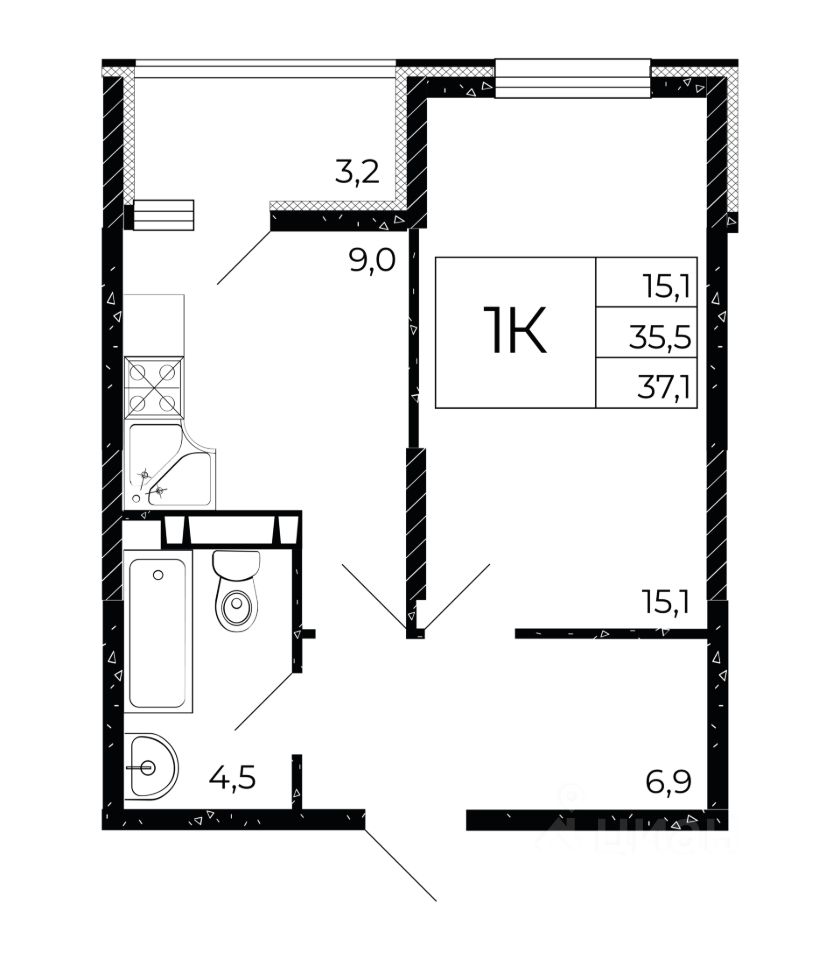 Общая площадь37,1 м2