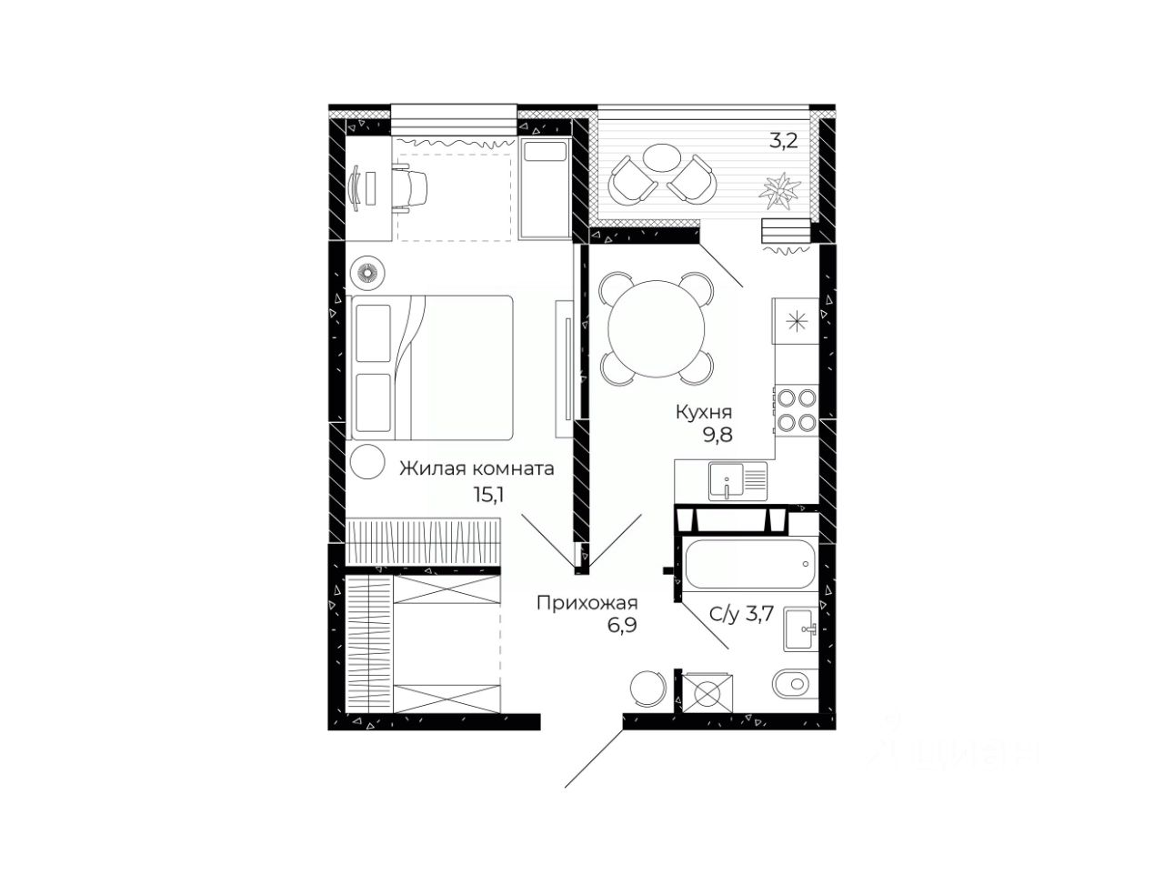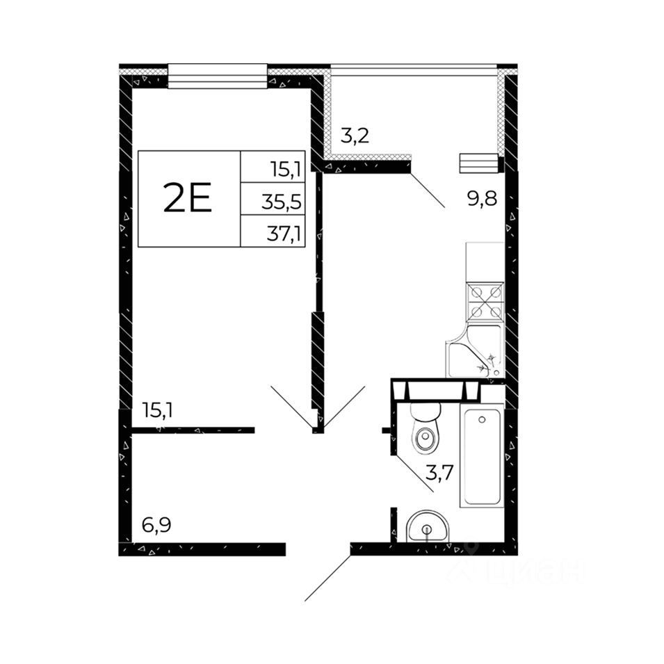 Общая площадь37,1 м2