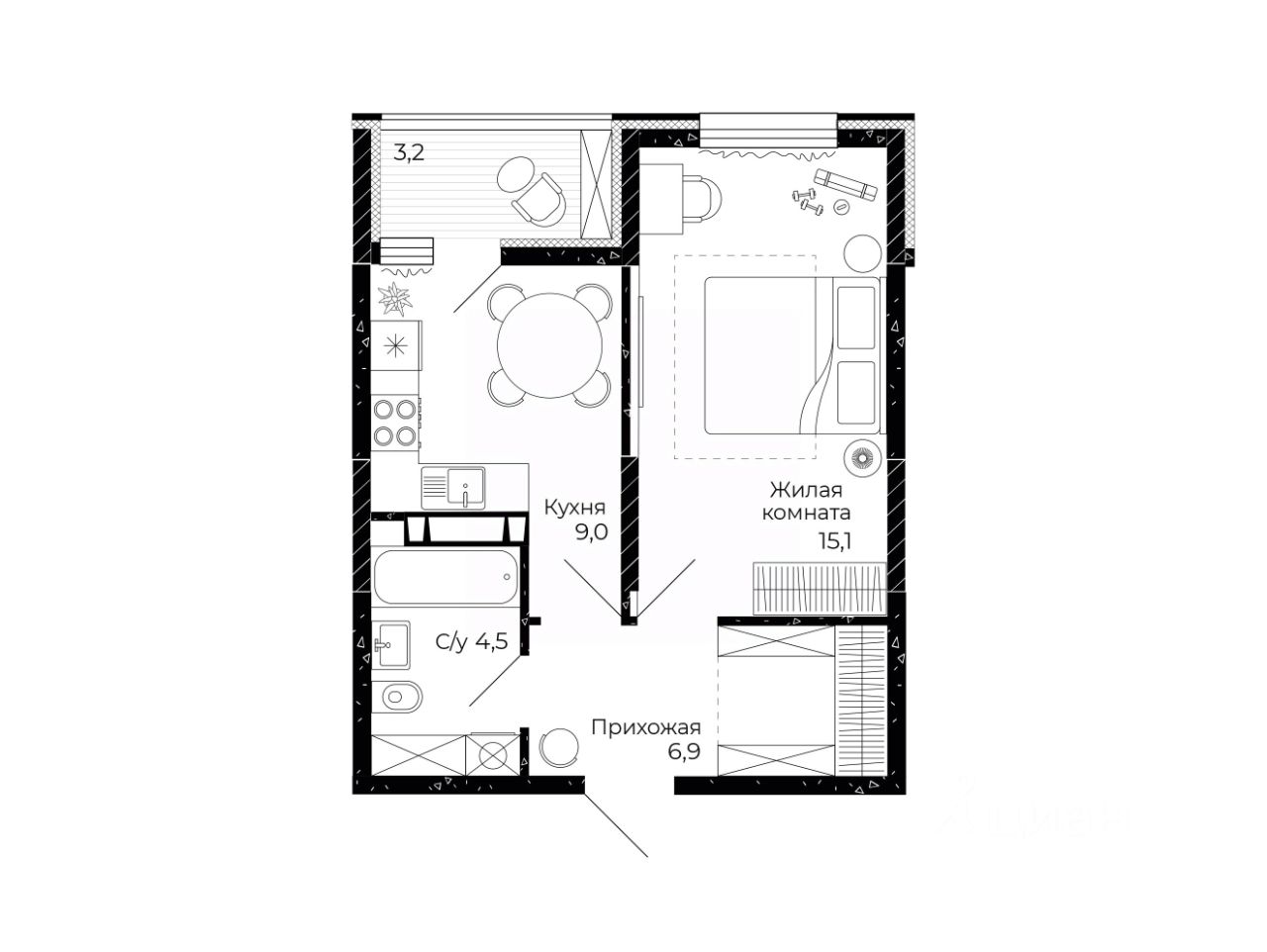 Общая площадь37,1 м2