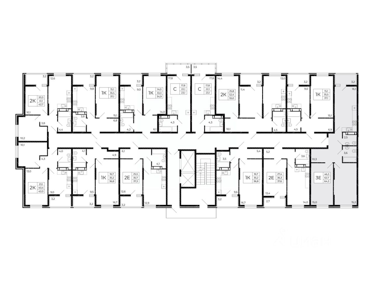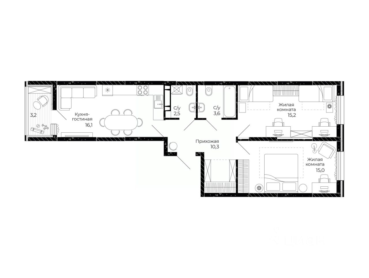 Общая площадь64,3 м2