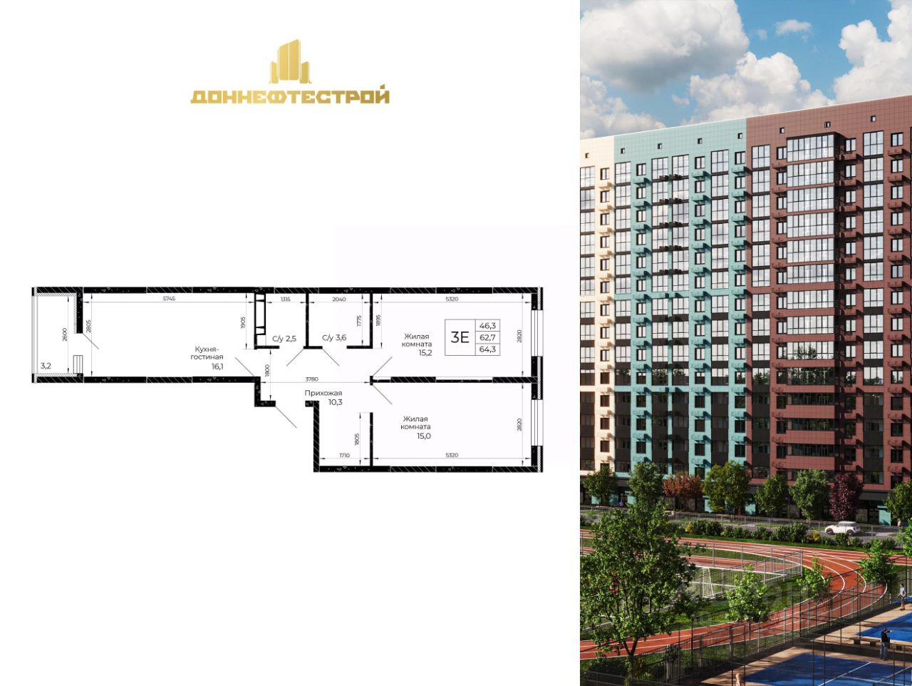 Общая площадь64,3 м2