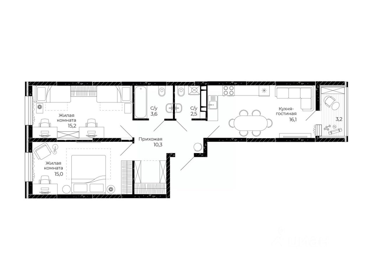 Общая площадь64,3 м2