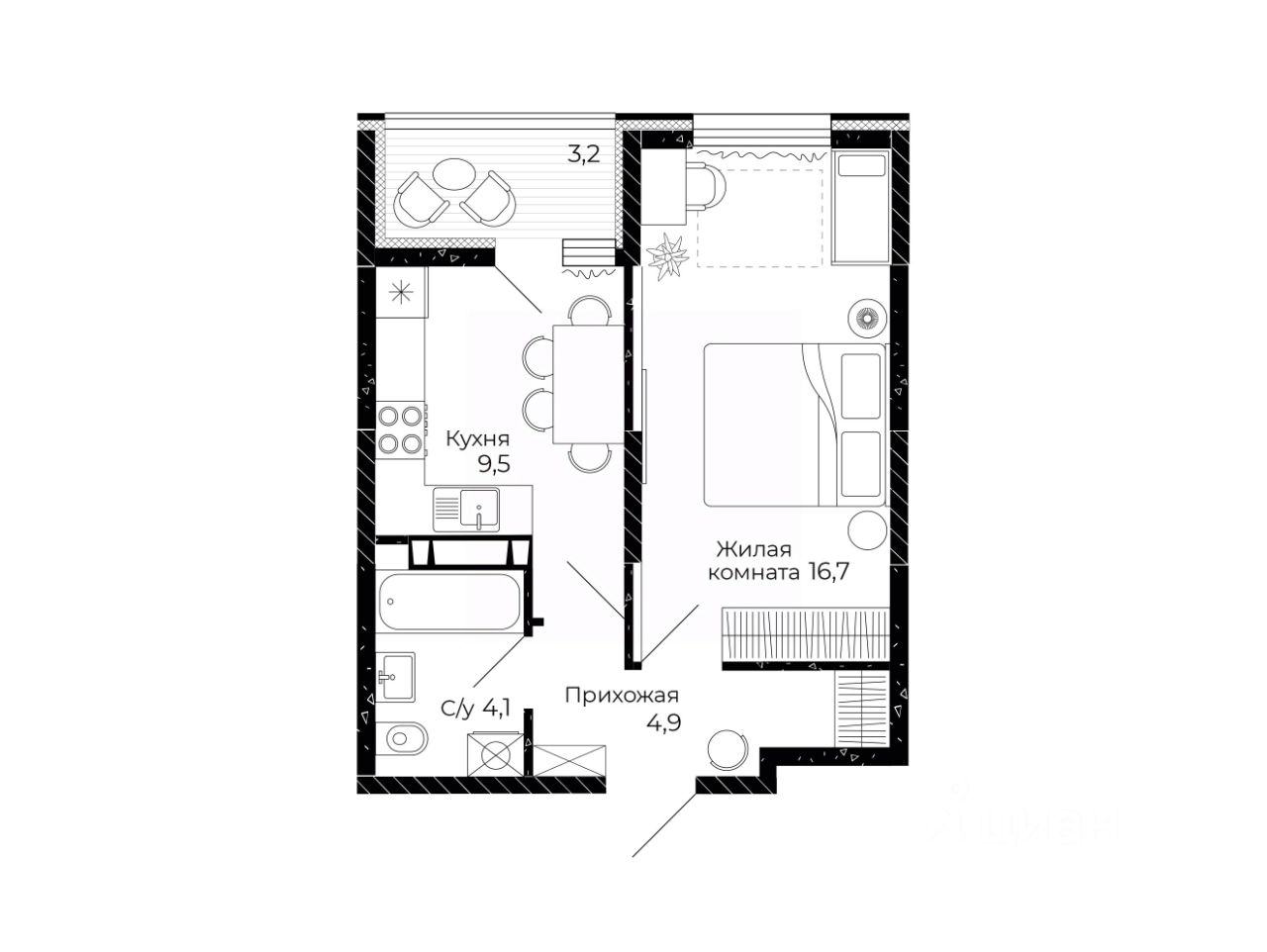 Общая площадь36,8 м2