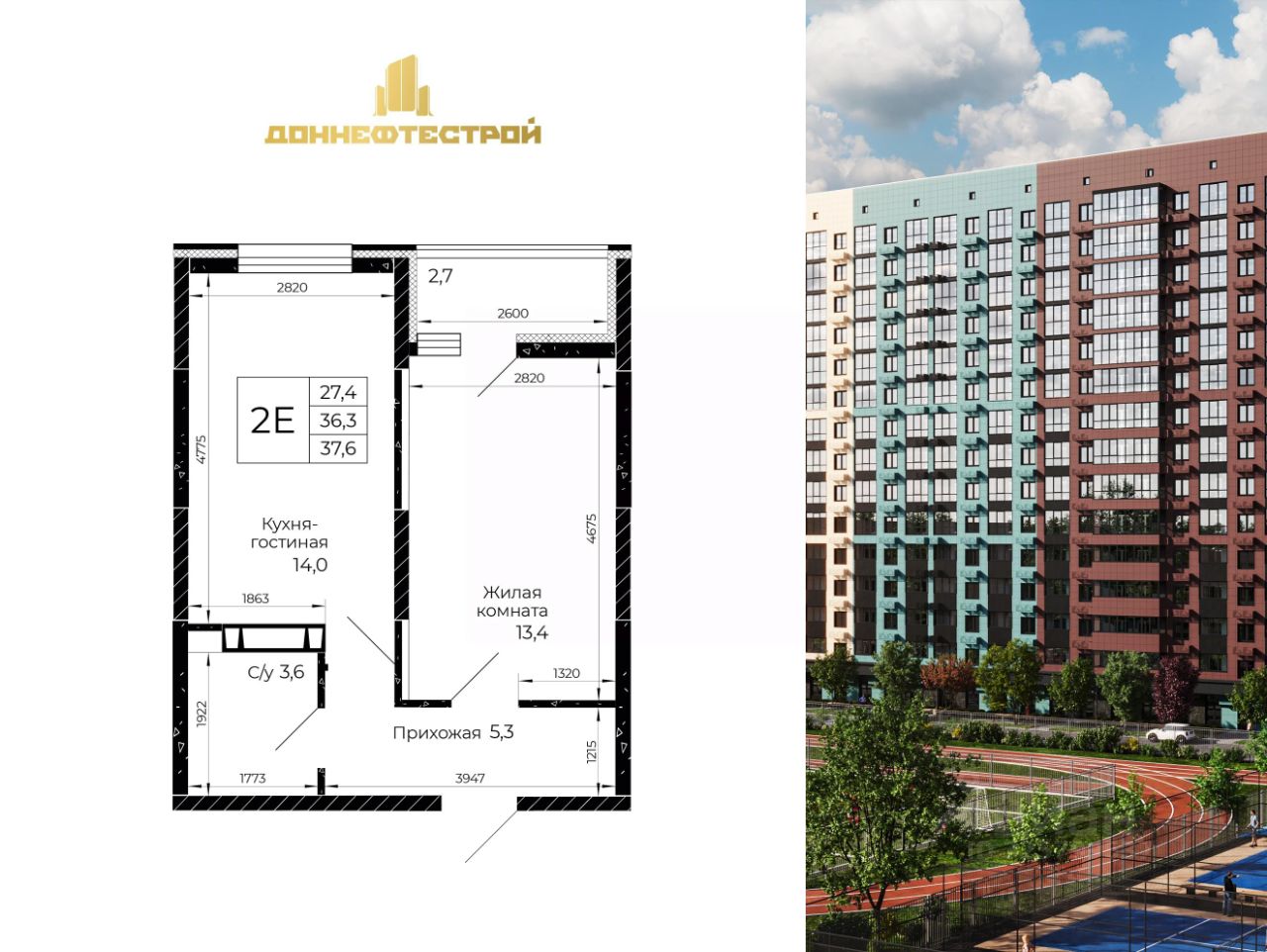 Продаётся 1-комнатная квартира в строящемся доме (Литер 4.2), срок сдачи: IV-кв. 2028, общей площадью 37.6 кв.м., на 10 этаже. Город стремительно развивается. Мы вместе с ним. Инфраструктура города пополняется новыми сервисами и полезными опциями, которые позволяют нам получать всё необходимое рядом с домом. В основе концептуального подхода СК ''ДОННЕФТЕСТРОЙ'' к развитию микрорайона ''Флора'' лежит формирование современного жилого и общественного пространства, интегрированного в живописную экологически благоприятную территорию на площади 30 гектаров. Вместе с жильём создана необходимая социальная, транспортная и коммерческая инфраструктура. В составе ''Флоры'' - два детских сада, трёхэтажная школа, физкультурно-оздоровительный центр, двор-парк с ландшафтным дизайном и фонтан. Для дополнительного комфорта жителей в проекте микрорайона предусмотрена новая автомобильная дорога с выходом в Аксайскому проспекту через ТЦ ''Мега''. В базовой структуре присутствуют коммерческие помещения для бизнеса, автономные котельные, подземный паркинг и гостевые парковки. Архитектура ''жилой экосистемы'' ''Флора'' среди других масштабных проектов городской застройки выделяется оригинальной логикой дизайна: аккуратная работа с цветом, формой и высотой зданий. Геометрия пространства подчёркнута через систему второстепенных и основных аллей в окружении деревьев и кустарников, образующих непрерывную навигацию внутри двора. В концепции благоустройства заложена идея единого динамичного пространства, которое создаётся через несимметричные линии пешеходных дорожек и аллей, направляющих жителей от одной зоны отдыха к другой. Переосмыслив актуальные запросы качества жизни современного человека в содружестве с архитекторами и ландшафтными дизайнерами, ГК ''ДОННЕФТЕСТРОЙ'' воплотила их в своём флагманском проекте ''Флора''.