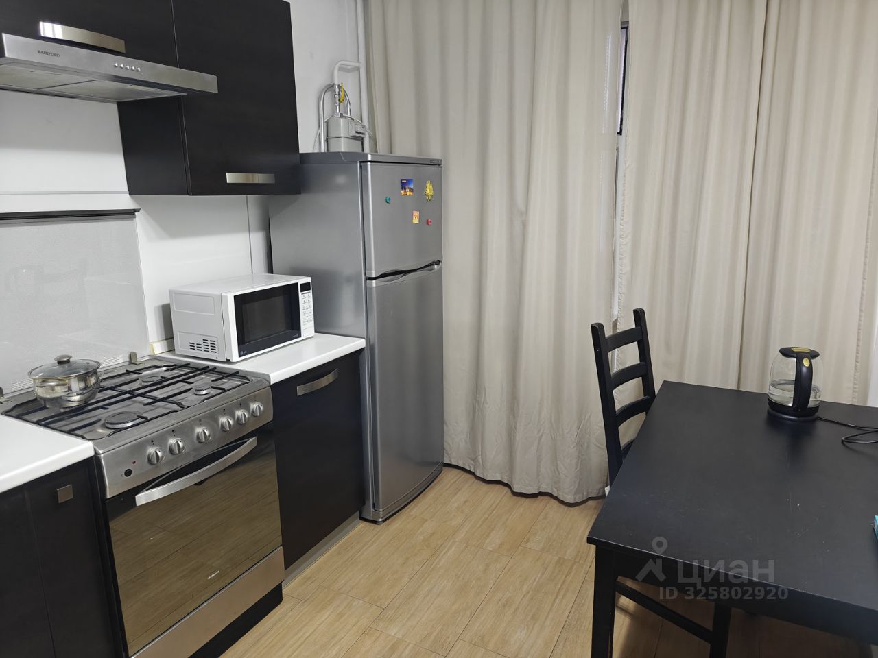 Бонус для покупателя — остаётся почти вся мебель и техника, а именно: холодильник, микроволновка, сплит-система, диван, шкафы, стулья, газовая плита и кухонная мебель. Заезжай и живи!
