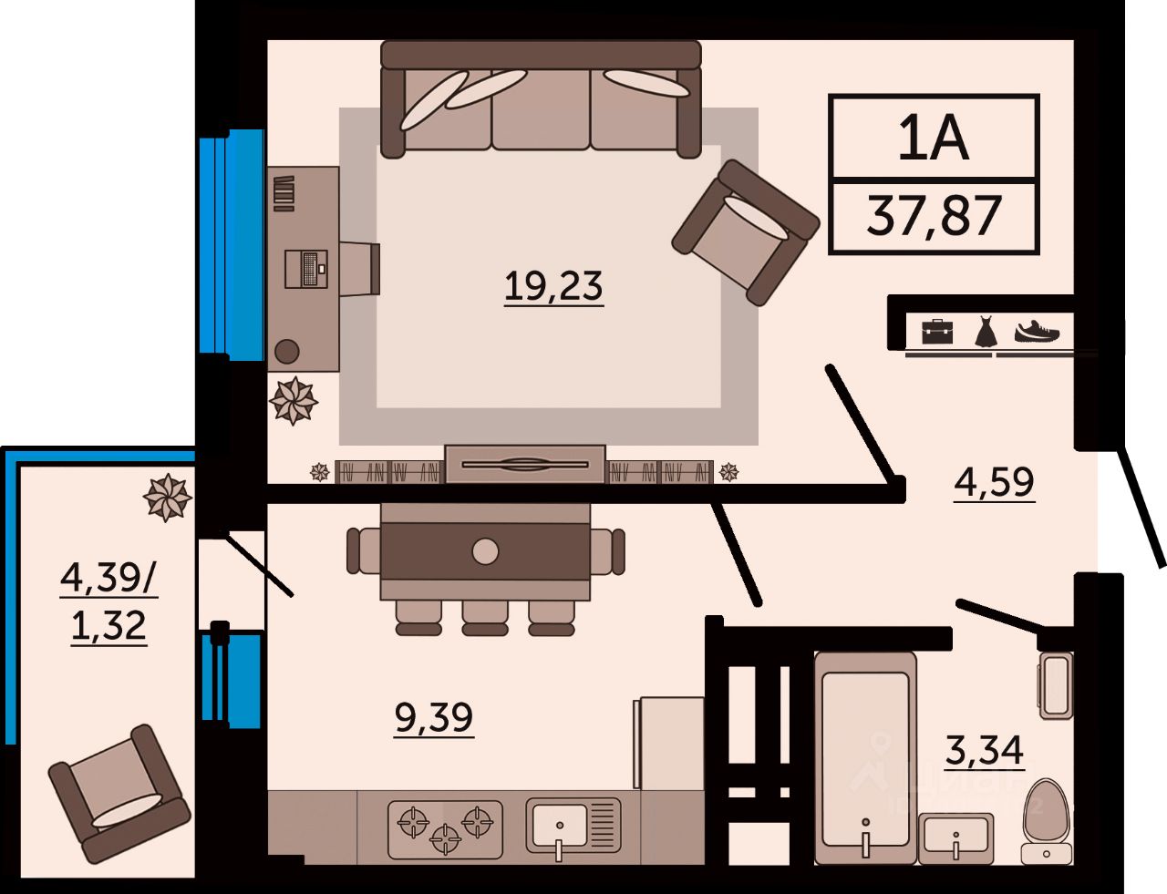 Общая площадь37,87 м2