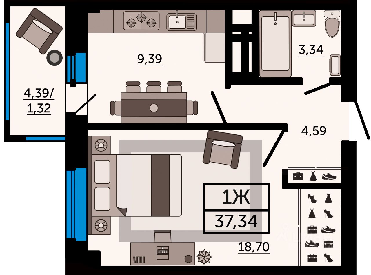 Общая площадь37,34 м2