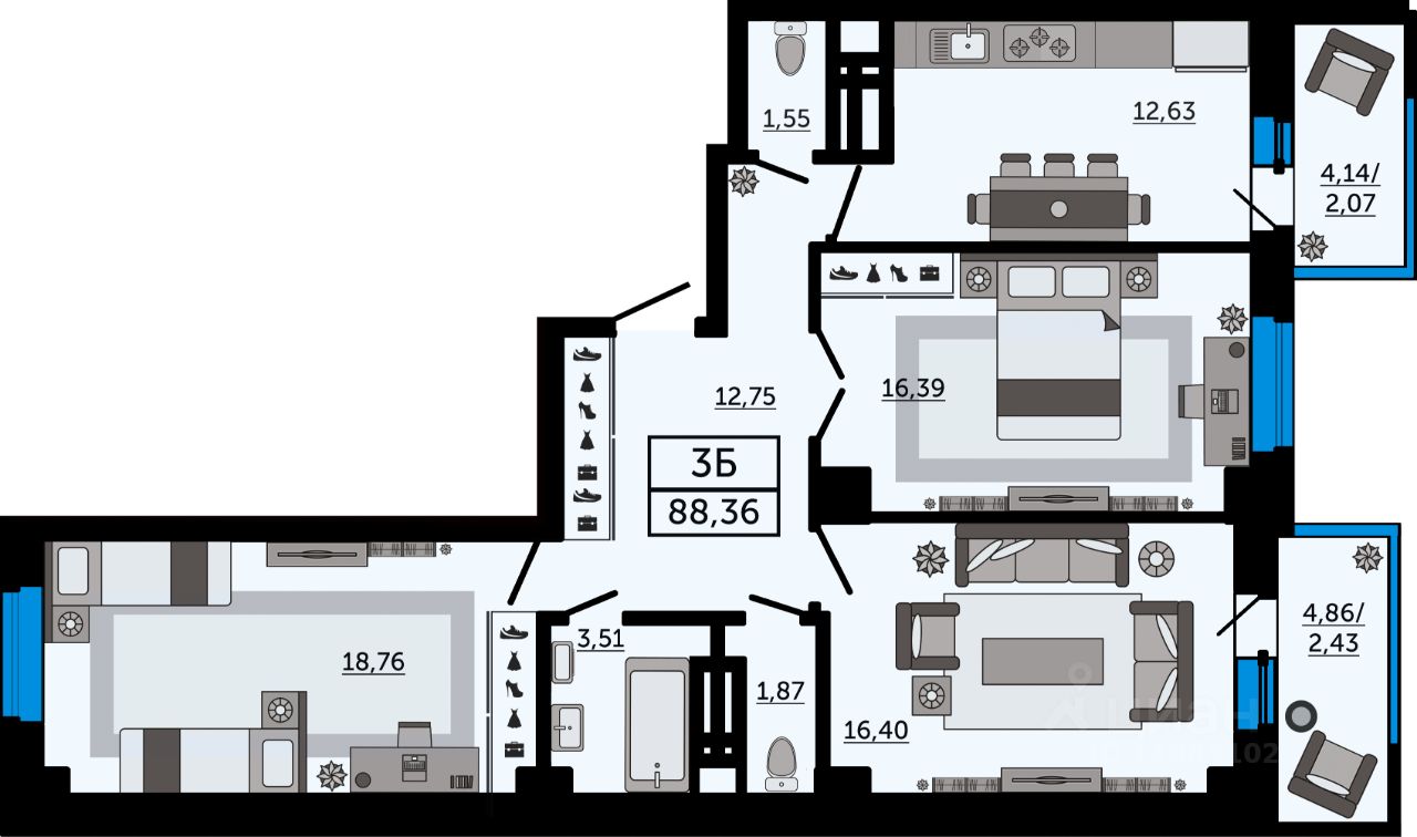 Общая площадь88,36 м2