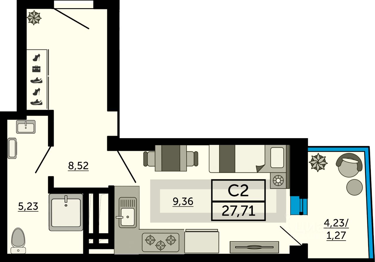 В продаже квартира-студия в новостройке, в стройварианте. Лучшее решение для молодой семьи, под сдачу или для инвестиций. Это функциональный вариант с большой прихожей. Благодаря её уникальной форме: основная комната отделена от входа коридором, что делает планировку идеальным вариантом для обустройства своего универсального и комфортного пространства. Успейте забронировать напрямую от застройщика по выгодным условиям.