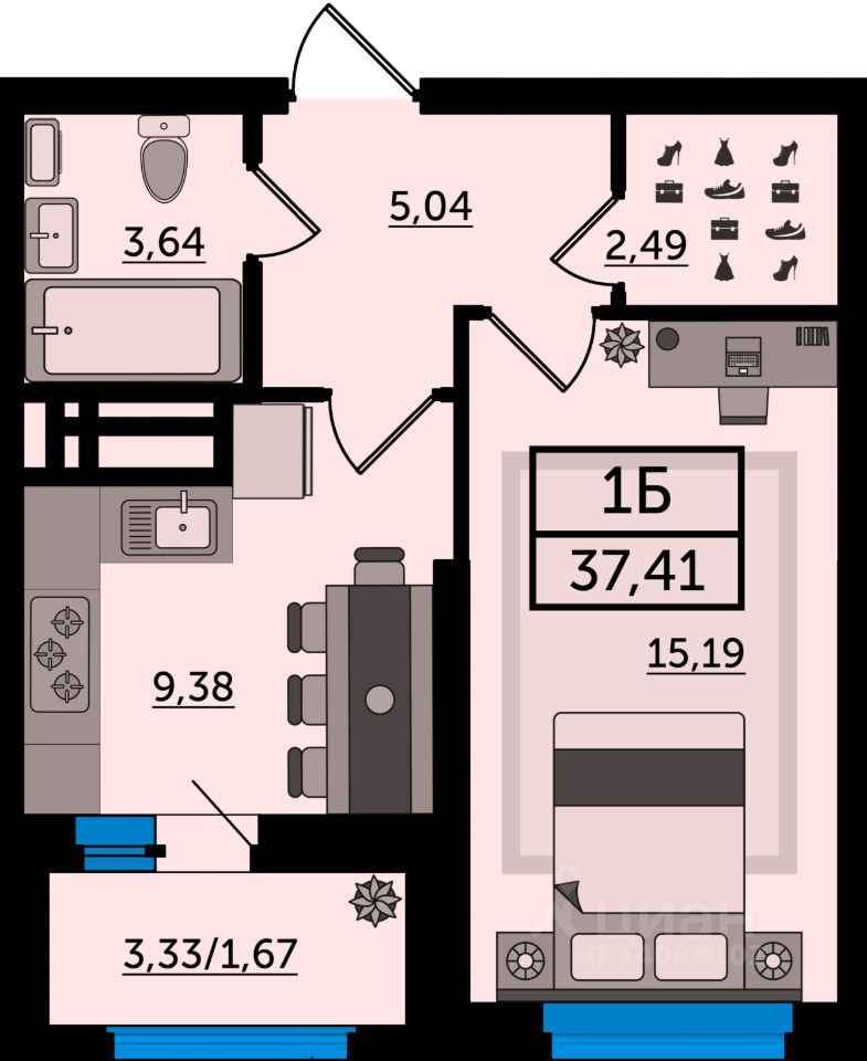 Общая площадь37,41 м2