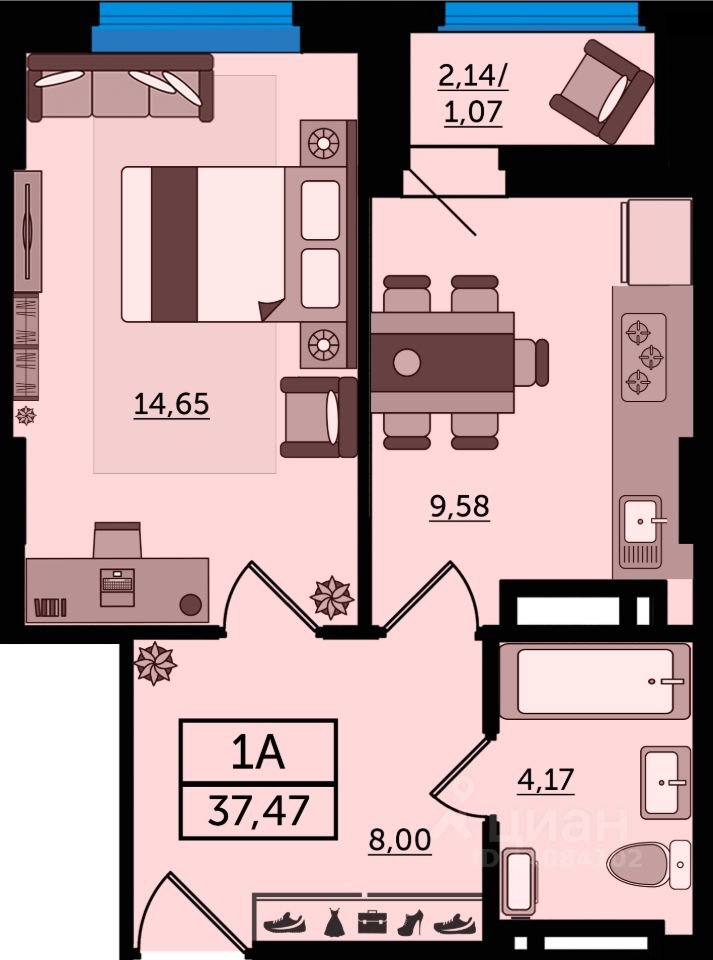 Общая площадь37,47 м2