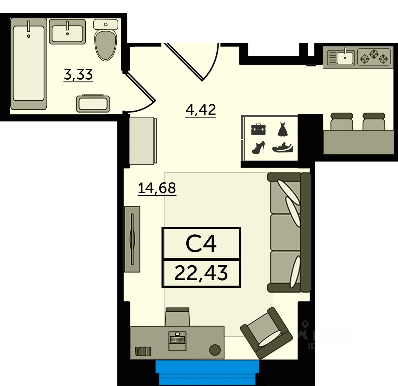 Общая площадь22,43 м2