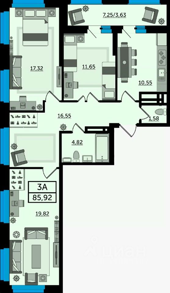 Общая площадь86,31 м2