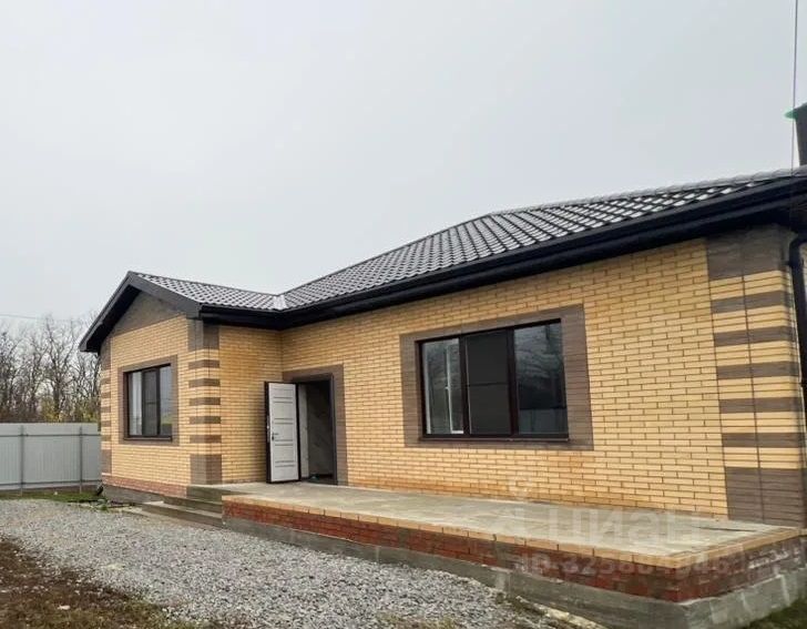 Планировка дома: большoй зал, три cпальни, куxня, отдeльнaя гocтинaя, санузел.