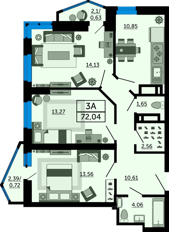 В продаже трехкомнатная квартира в новостройке. Лучшее решение для жизни, под сдачу или для инвестиций. Просторная трёхкомнатная квартира с большой прихожей, отдельным санузлом и гардеробной. Благодаря универсальному размеру комнат вы можете воплотит все свои оригинальные дизайнерские идеи. Дополнительным плюсом станет вид из больших окон на мост Стачки и реку Дон. На этапе строительства самые выгодные предложения. Успейте забронировать идеальное место для жизни напрямую от застройщика.