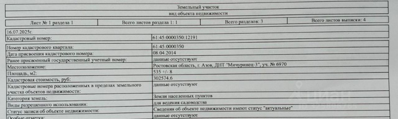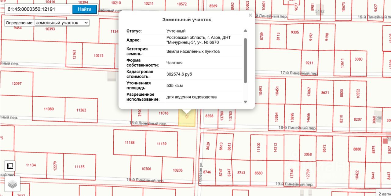 кадастровый номер: 61:45:0000350:12191
