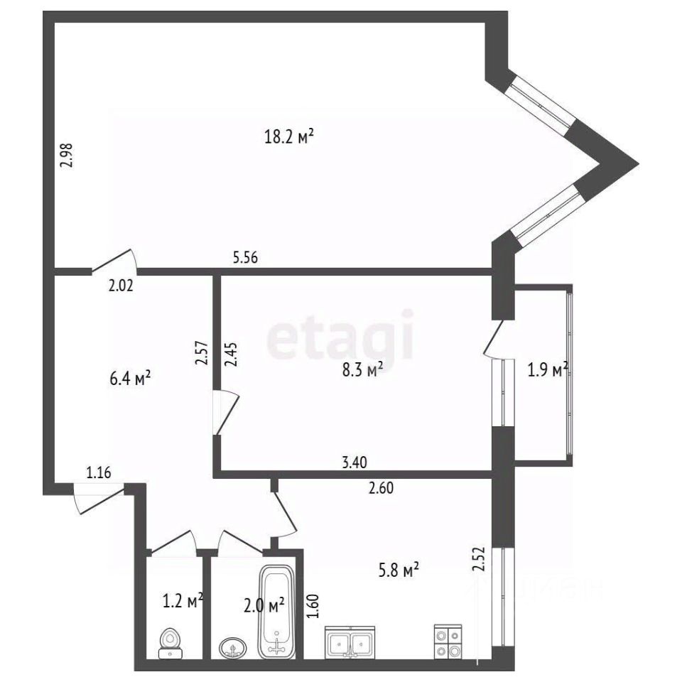продам 2-к, Малюгиной, 286/695 450 000 ₽