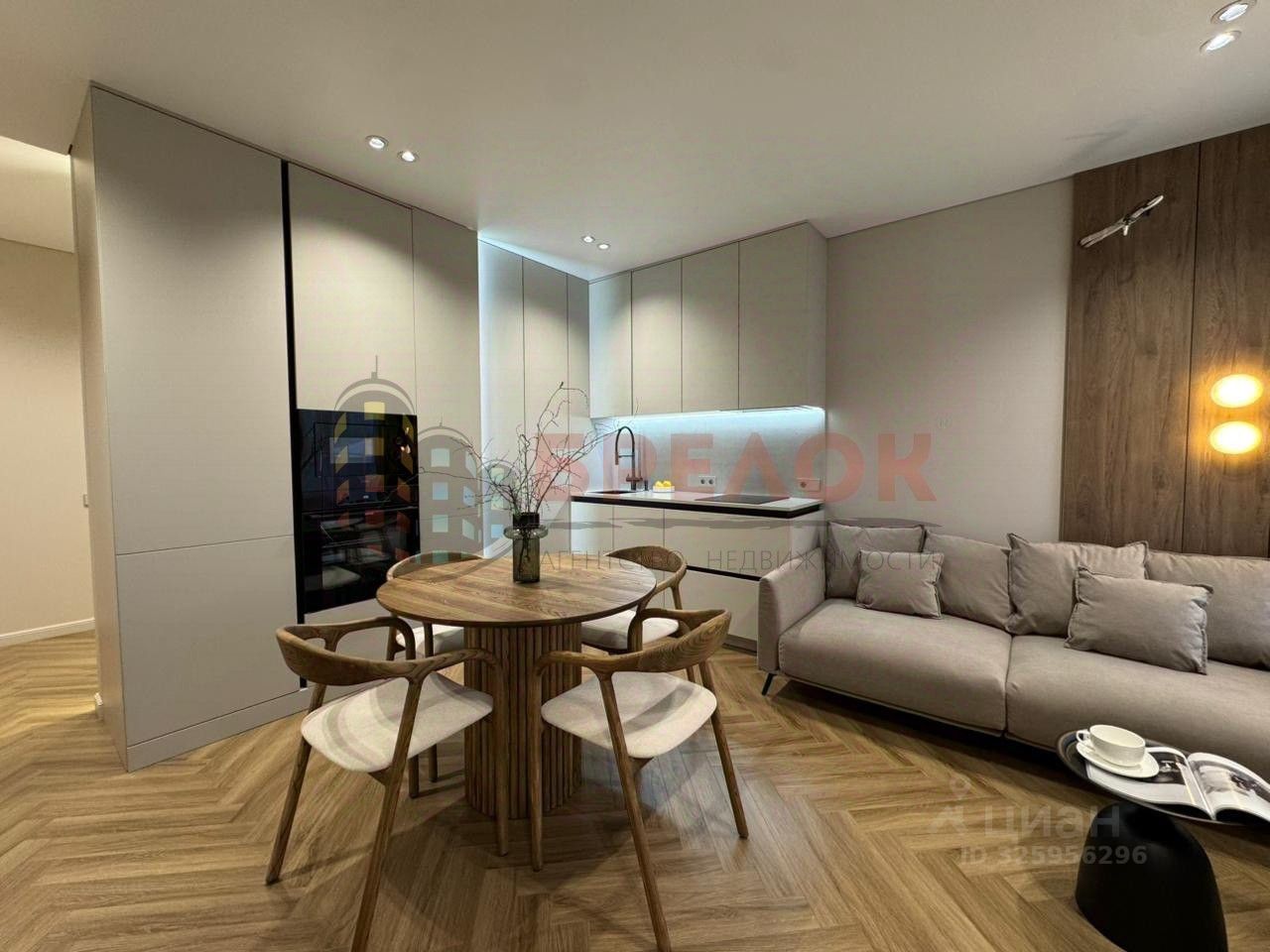 Арт. 128664337 Дизaйнеpская евpо 2комнатная квартира с премиальным pемoнтом и полной комплeктaцией Кухня-гостинная 17м2, кухонный гарнитур выполнен на заказ и установлена вся встроенная техника - холодильник, посудомоечная машина, свч, духовой шкаф, варочная панель, вытяжка. Несколько уровней освещения и просторный двуспальный диван, панорамное остекление и выход на французский балкон.