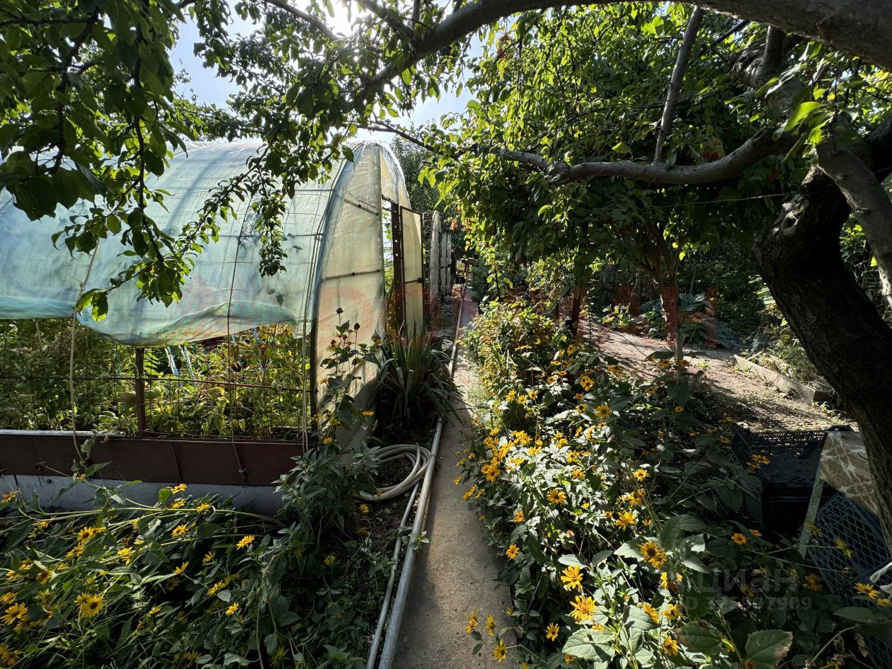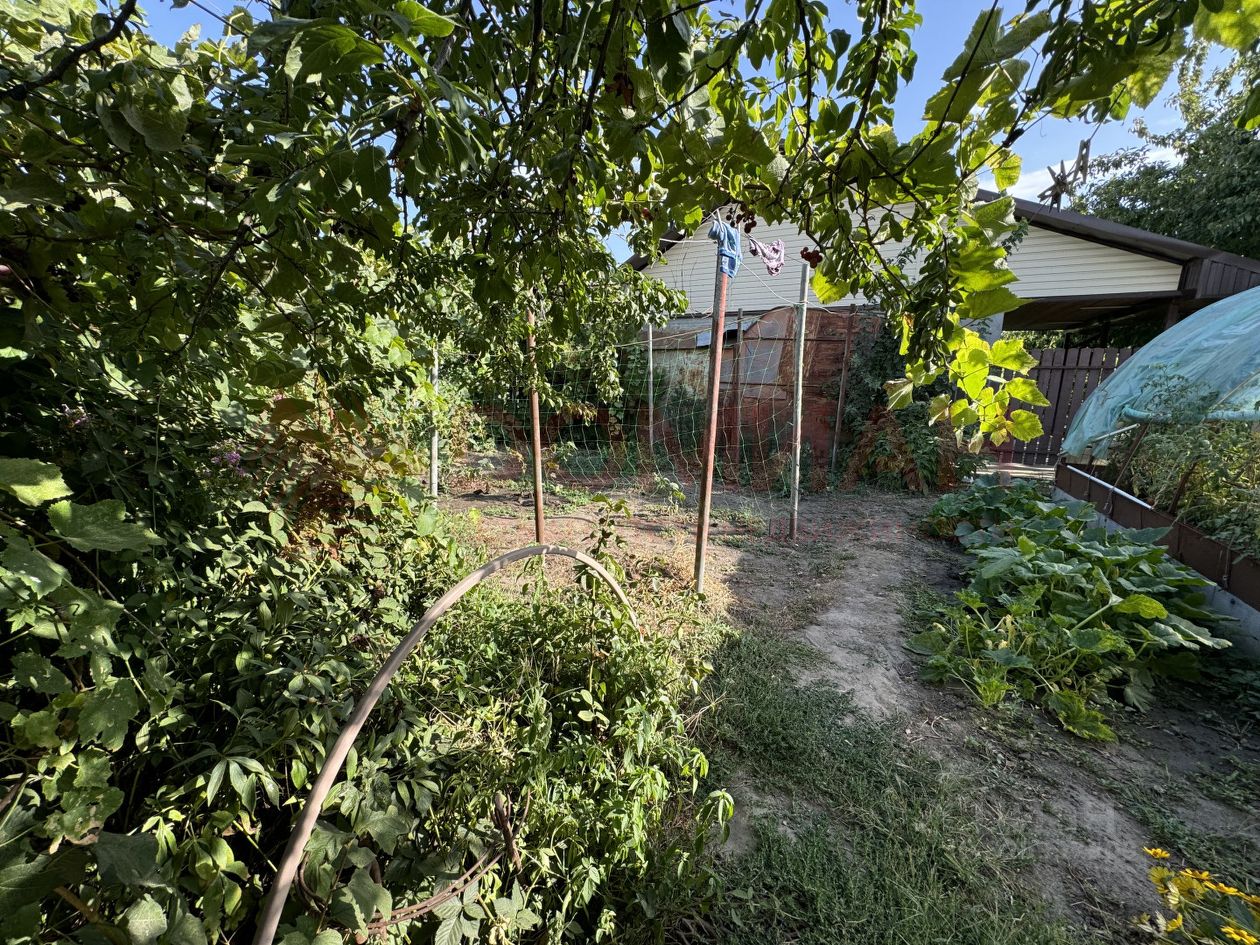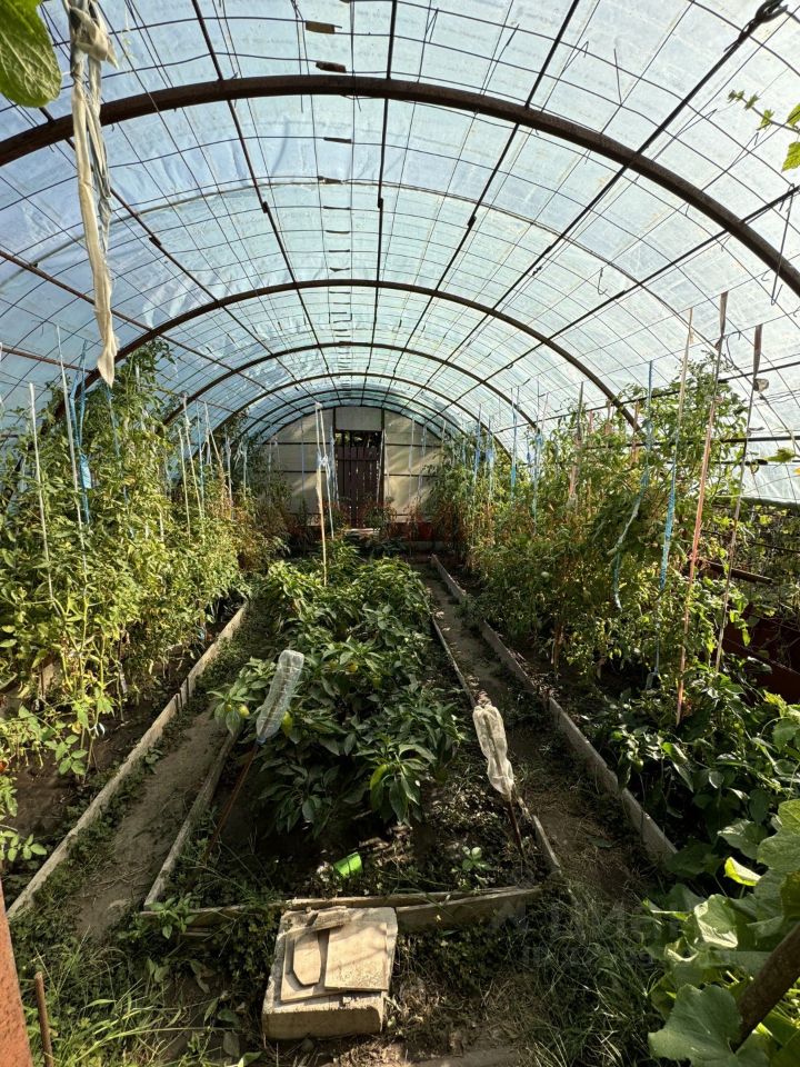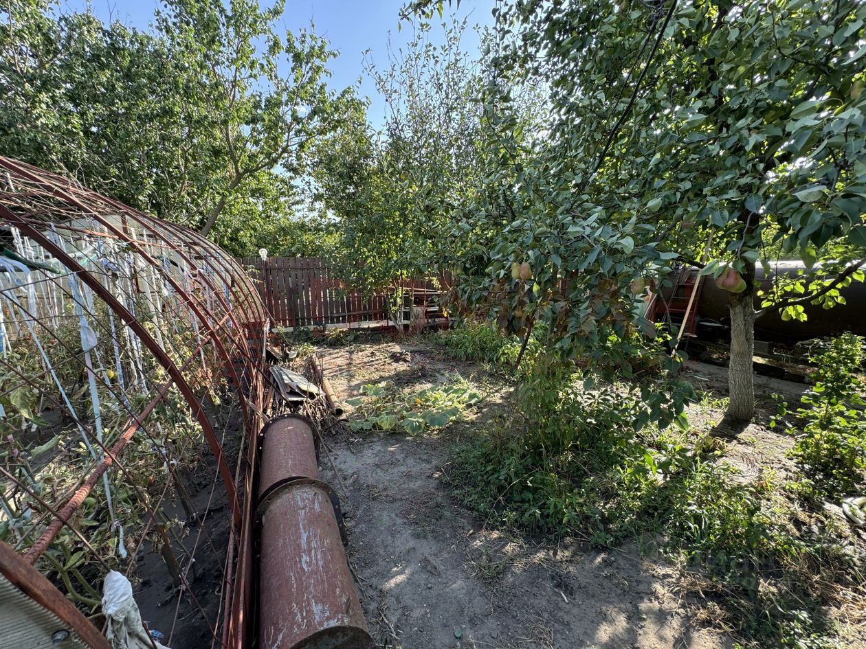 На участке 4.5 сотки расположен кирпичный домик с летней кухней, 2 теплицы по 6.5 метров, душ и туалет, а также навес, где можно укрыться от солнечных лучей. В домике пластиковые окна, хорошее яркое освещение. Остается вся мебель: два газовых баллона, два дивана, кровать и другое.