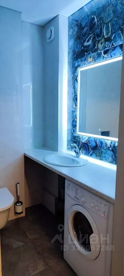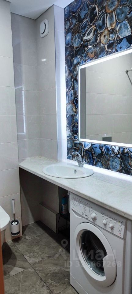 Совмещенный санузел выполнен в современном стиле, оснащен стиральной машиной и качественной сантехникой. В квартире предусмотрены шкафы для хранения вещей.