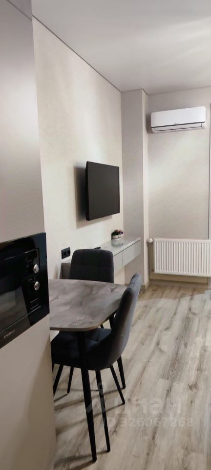 Сдается стильная студия с современным ремонтом в кирпичном доме 2023 года постройки. Просторная кухня оборудована всем необходимым: холодильник, плита, микроволновая печь и обеденный стол. В гостиной зоне установлен кондиционер и телевизор с кабельным/цифровым ТВ.
