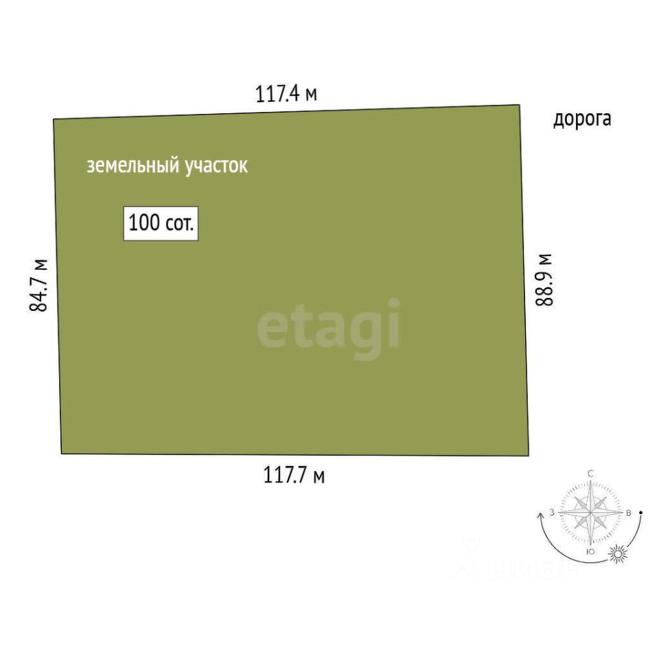 Площадь: 100 соток (1 га).