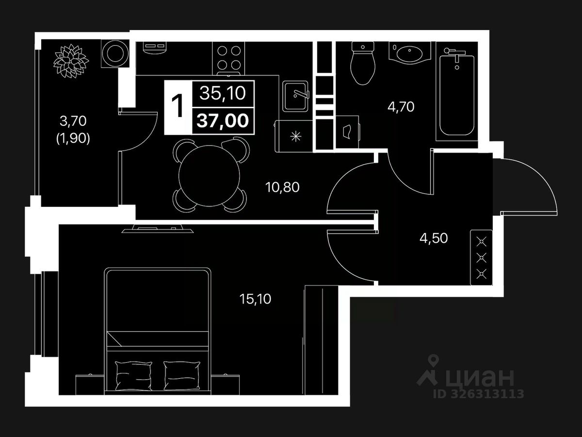Общая площадь37 м2