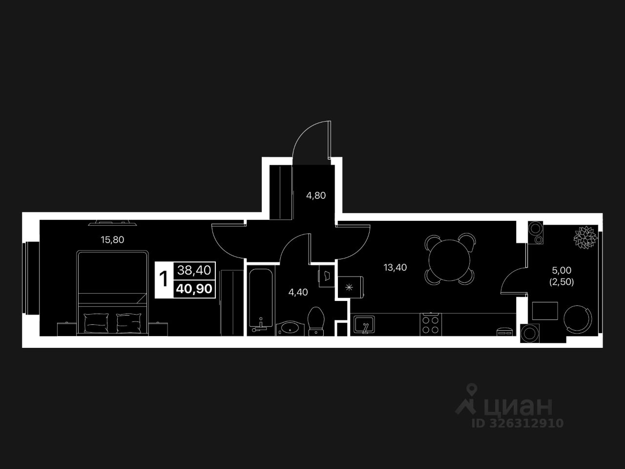 Общая площадь40,9 м2