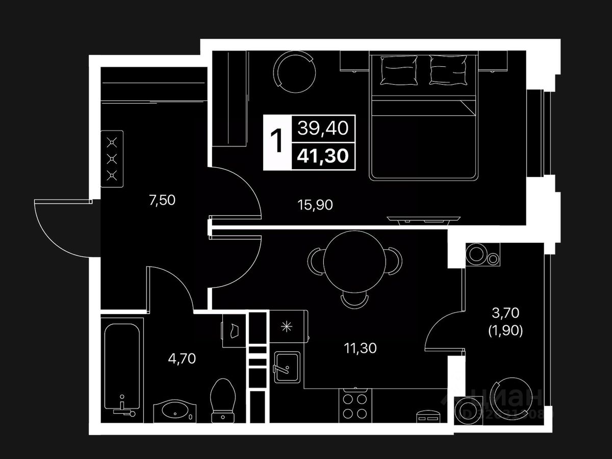 Общая площадь41,3 м2