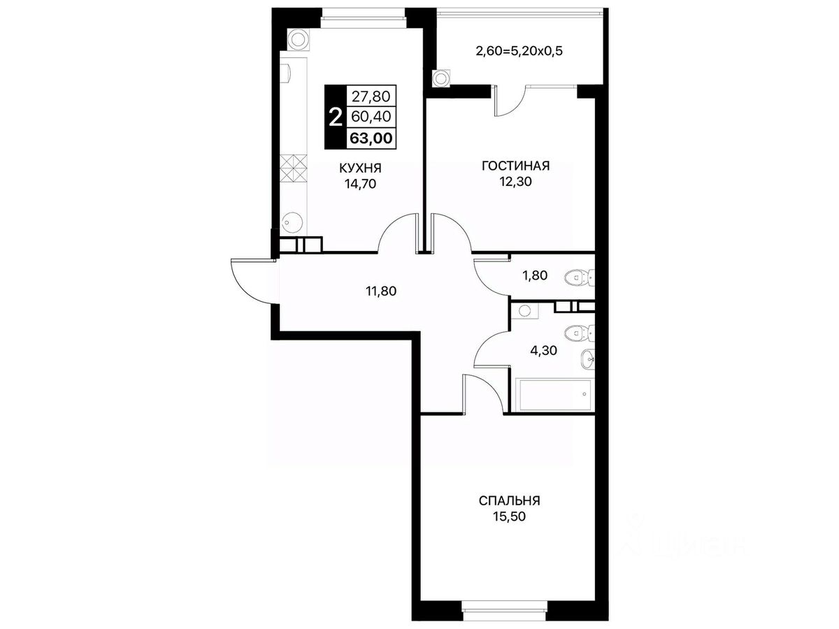 Ваша двухкомнатная квартира: Площадь: оптимальная для семьи, где есть отдельные зоны для отдыха, работы и уюта. Высота потолков 2,74 м и панорамные окна — свет и ощущение свободы. Отделка White Box — заезжайте и обустраивайте пространство под себя. Индивидуальное отопление — тепло и уют круглый год.