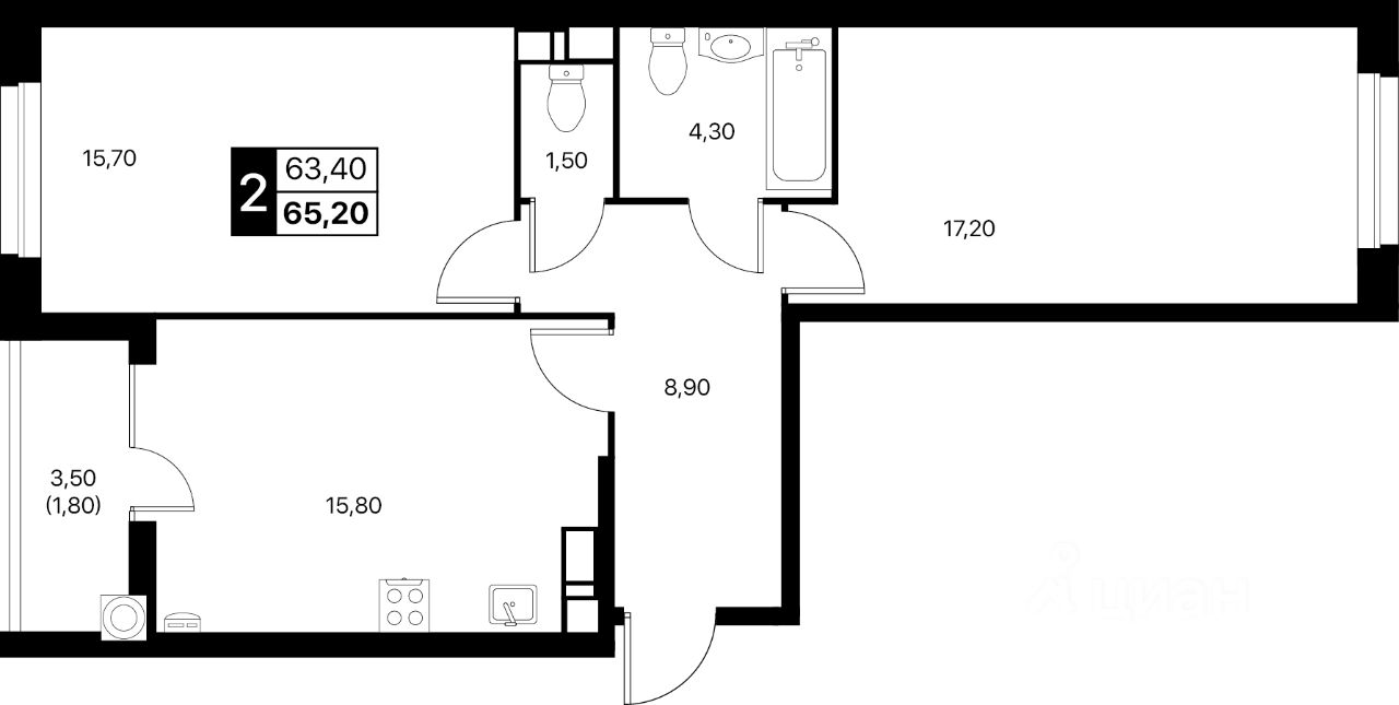 Общая площадь65,2 м2