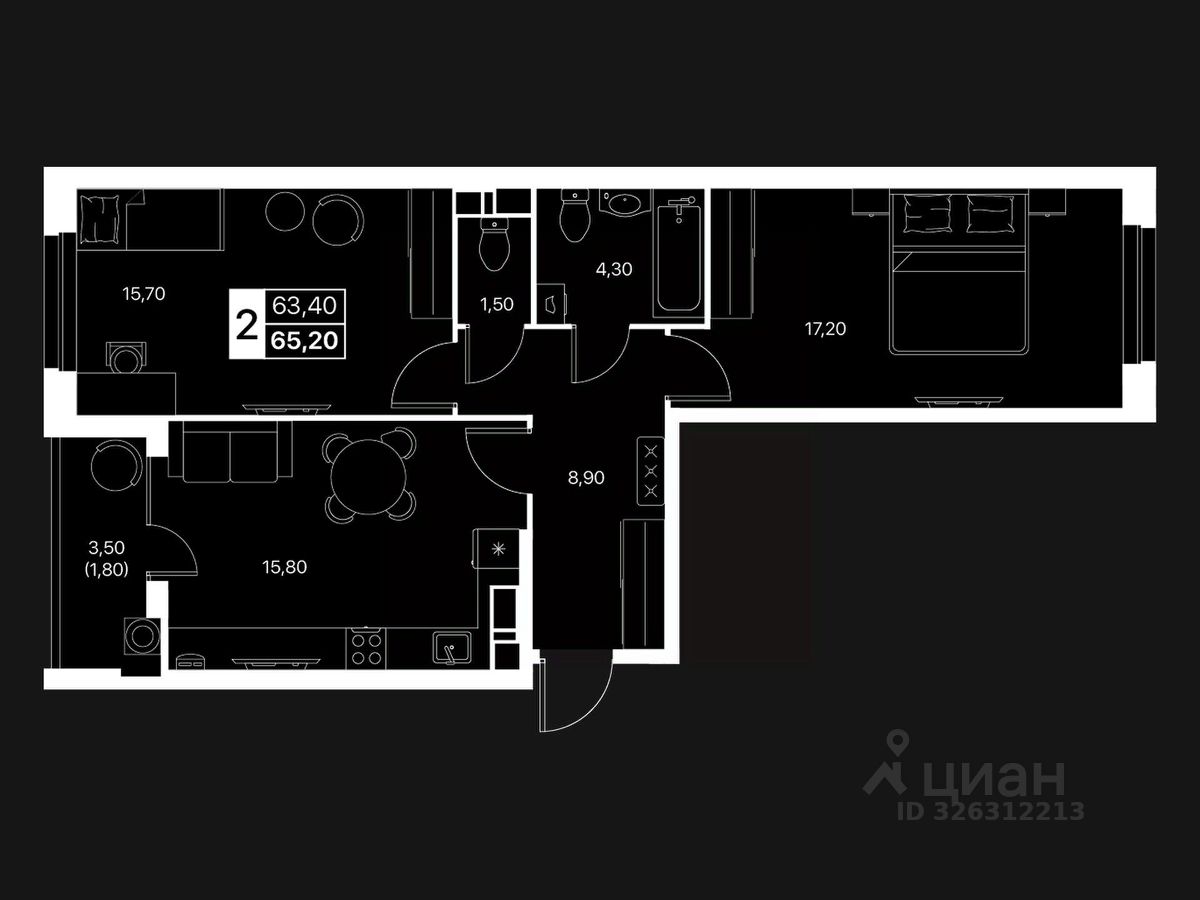 ДВУХКОМНАТНАЯ КВАРТИРА Идеальный формат для семьи или тех, кто ценит пространство: — Большая кухня-гостиная — Отдельная спальня — Возможность выделить рабочую зону — Тишина, тепло, удобная планировка — Большие окна и много света