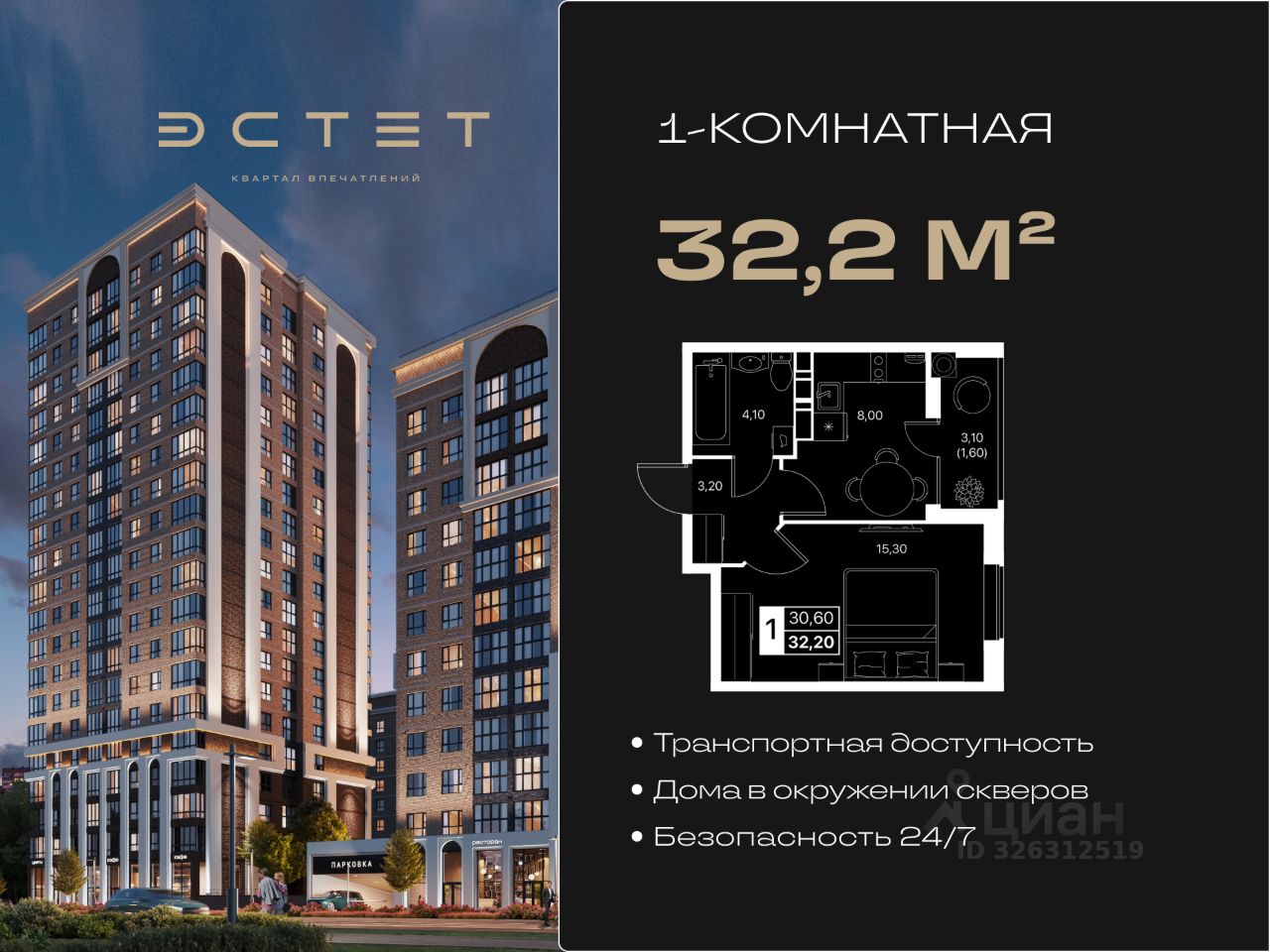 Напишите — пришлем планировки, актуальные цены, акции и подберу подходящую 1-комнатную квартиру в ЖК ''Эстет''.