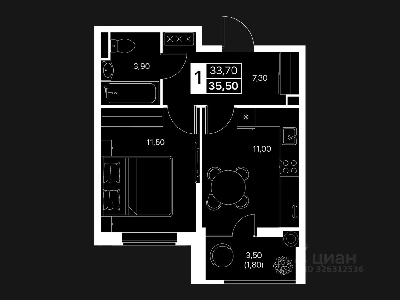 Общая площадь35,5 м2