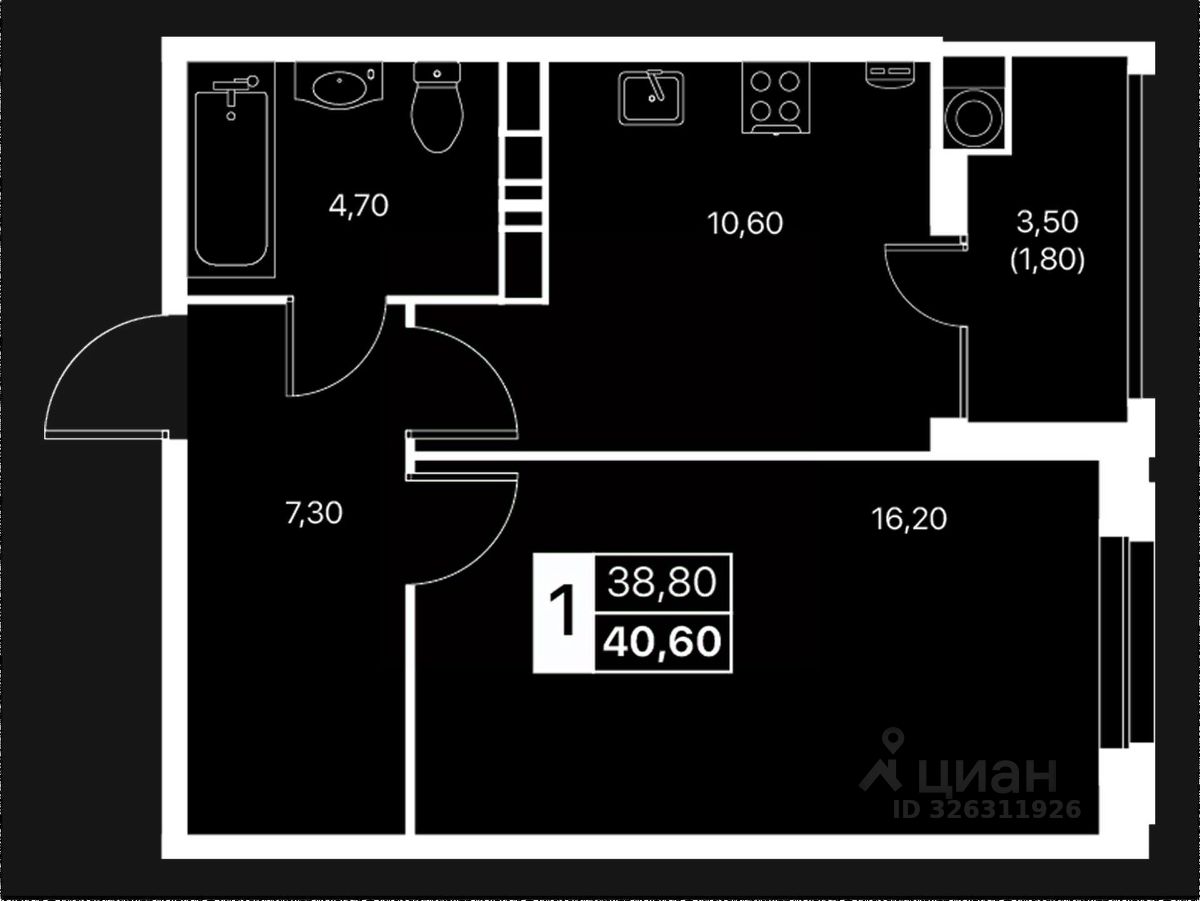 Общая площадь40,6 м2