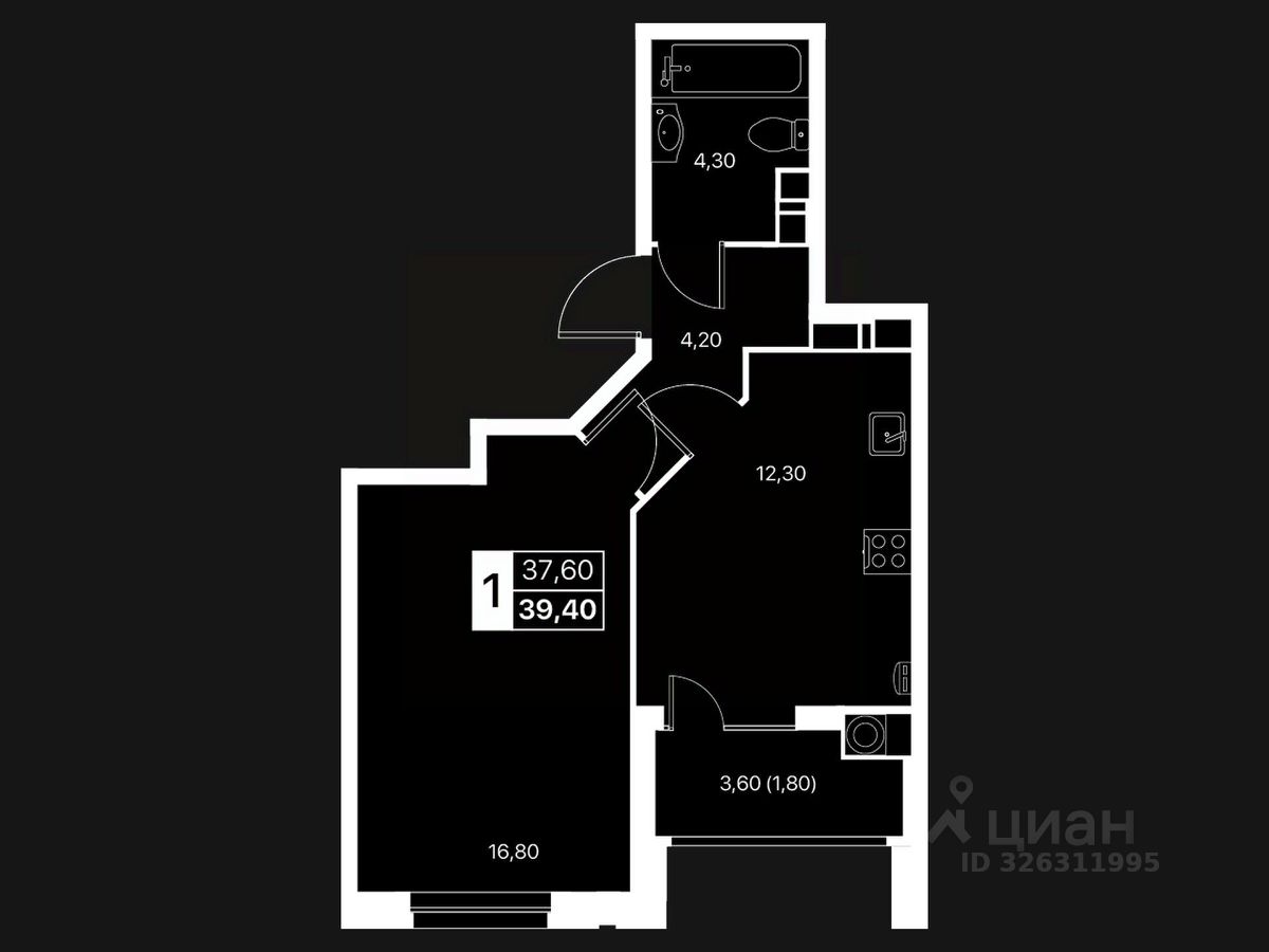 Общая площадь39,4 м2