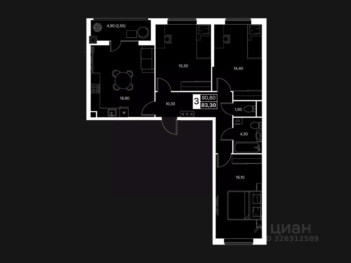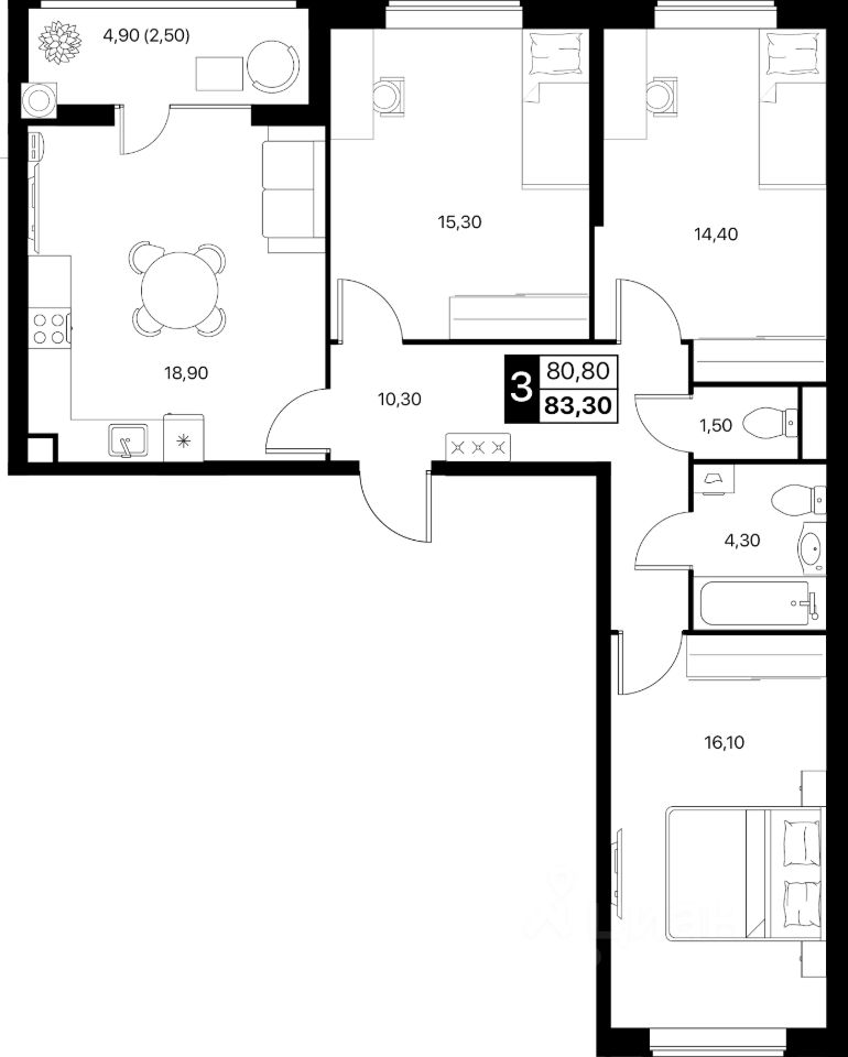 Общая площадь83,3 м2
