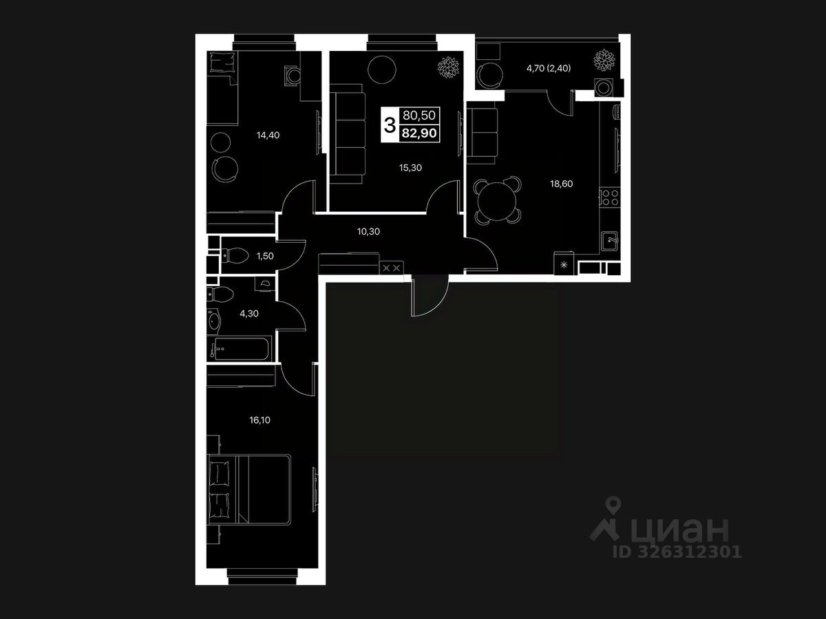 Общая площадь82,9 м2
