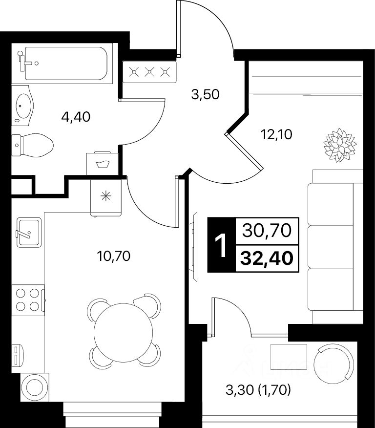 Общая площадь32,4 м2