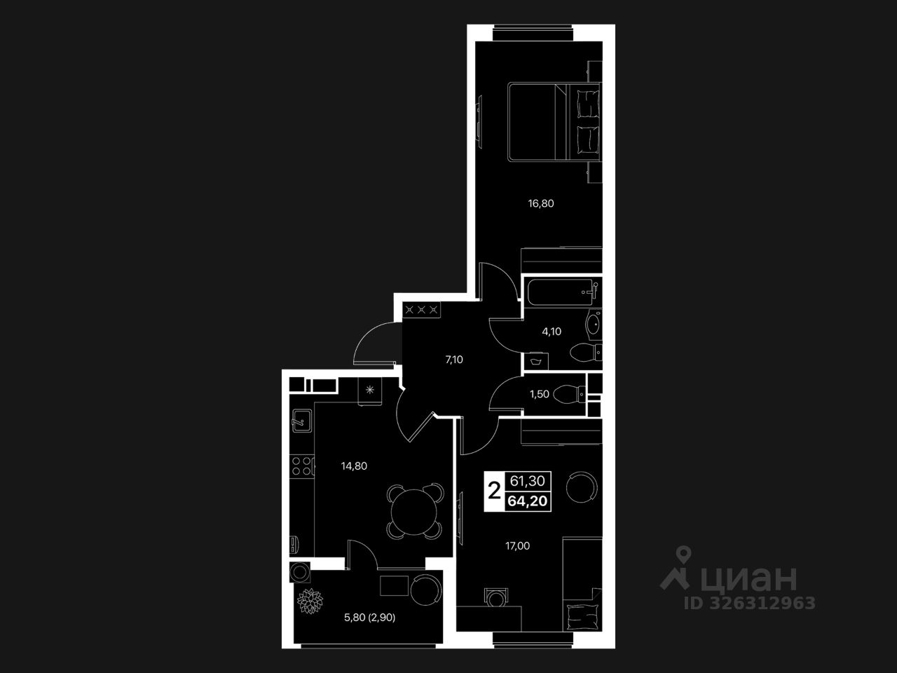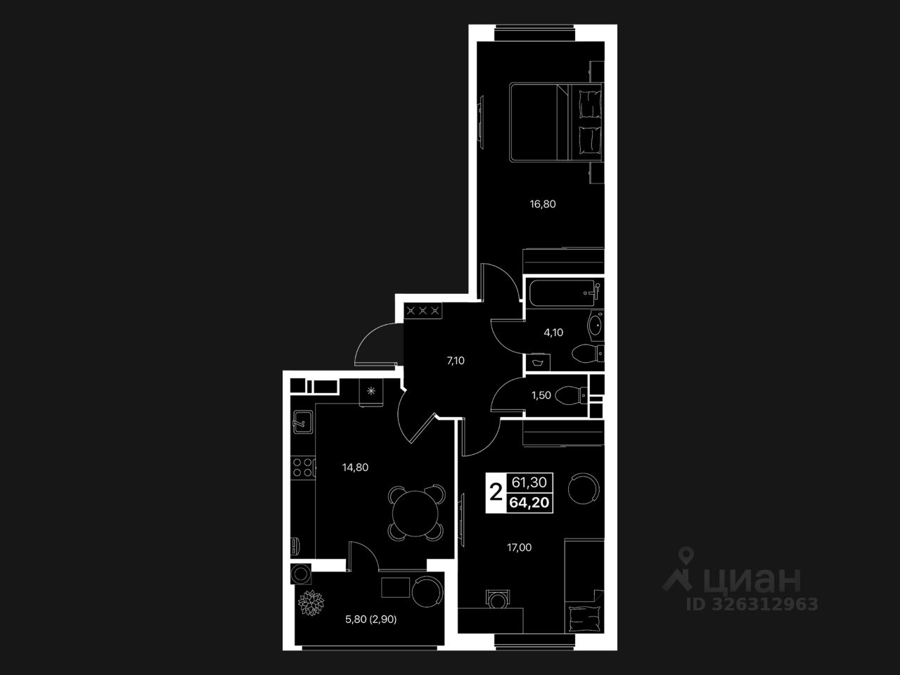ДВУХКОМНАТНАЯ КВАРТИРА Идеальный формат для семьи или тех, кто ценит пространство: — Большая кухня-гостиная — Отдельная спальня — Возможность выделить рабочую зону — Тишина, тепло, удобная планировка — Большие окна и много света