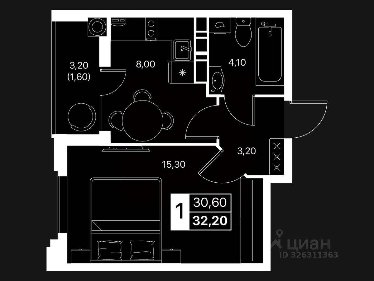 Общая площадь32,2 м2