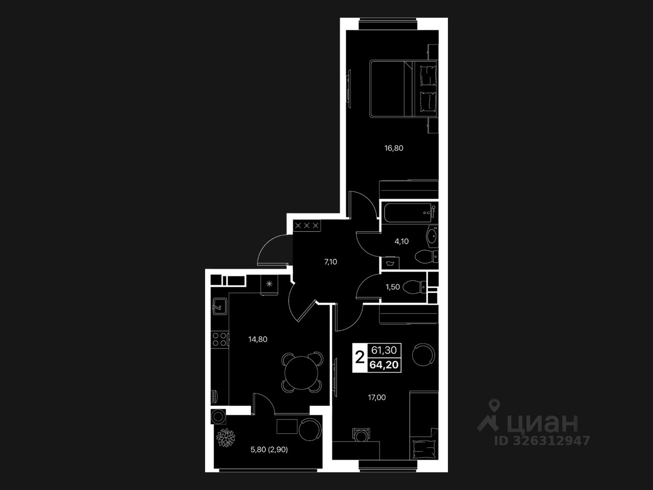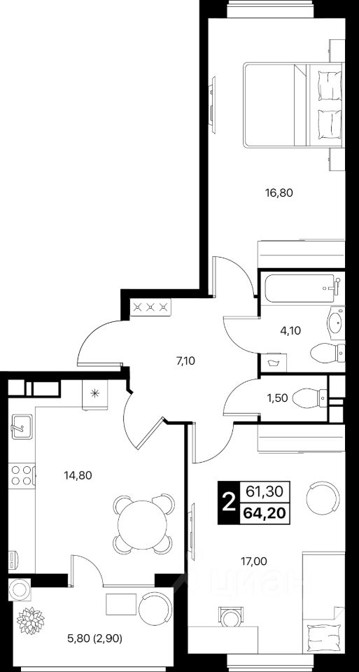 Общая площадь64,2 м2