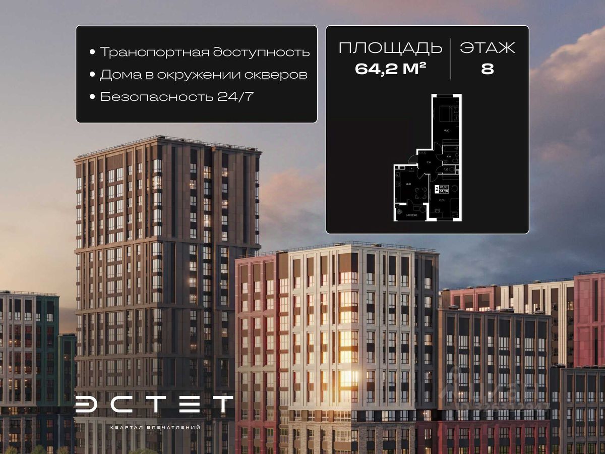 2-комнатная квартира в ЖК ''Эстет'' — идеальное пространство для жизни от надежного застройщика ЮгСтройИнвест.