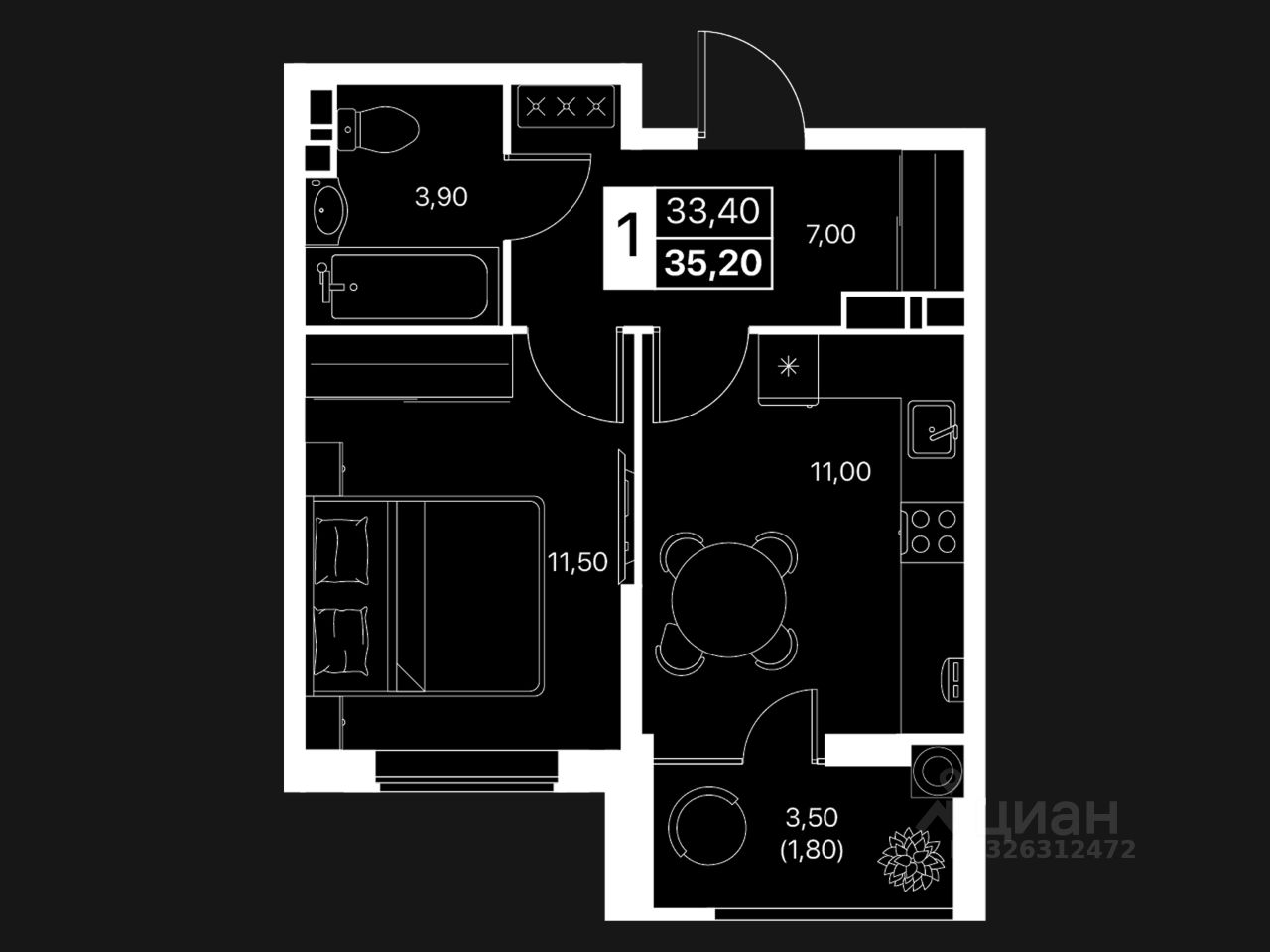 Общая площадь35,2 м2