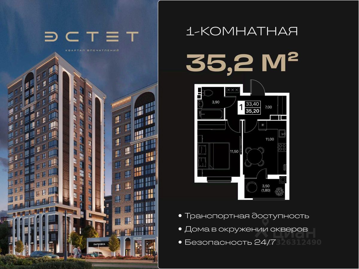 Напишите — пришлем планировки, актуальные цены, акции и подберу подходящую 1-комнатную квартиру в ЖК ''Эстет''.